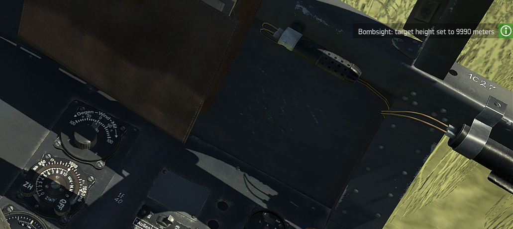 1CGS IAmNotARobot Posted May 22, 2023 1CGS Posted May 22, 2023 15.04.2023 в 22:57, I./JG3_Charon сказал: Ah, I missed this thread. Duplicating my last report in this format: Brief description: Ar 234 Höhenkorrekturgeber has the wrong scaleDetailed description, conditions: The Höhenkorrekturgeber (Altitude Corrector/target height selector) in the Ar 234 goes, according to technochat, to 10km(!!) in 1km increments, but the instrument itself is labeled as "zielhöhe ü NN - hm" or "Target height over sea level -- hectometers". So each increment on the device should be a 100m adjustment, not 1000m, with a more reasonable maximum of 1000m. Thx for observation, will be fixed in upcoming patch 3