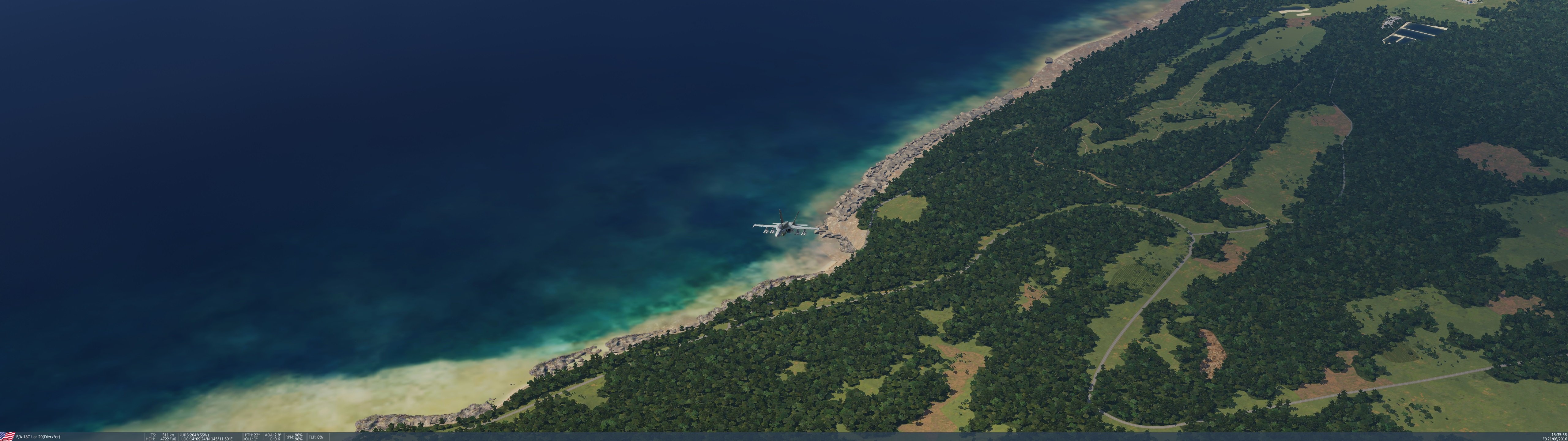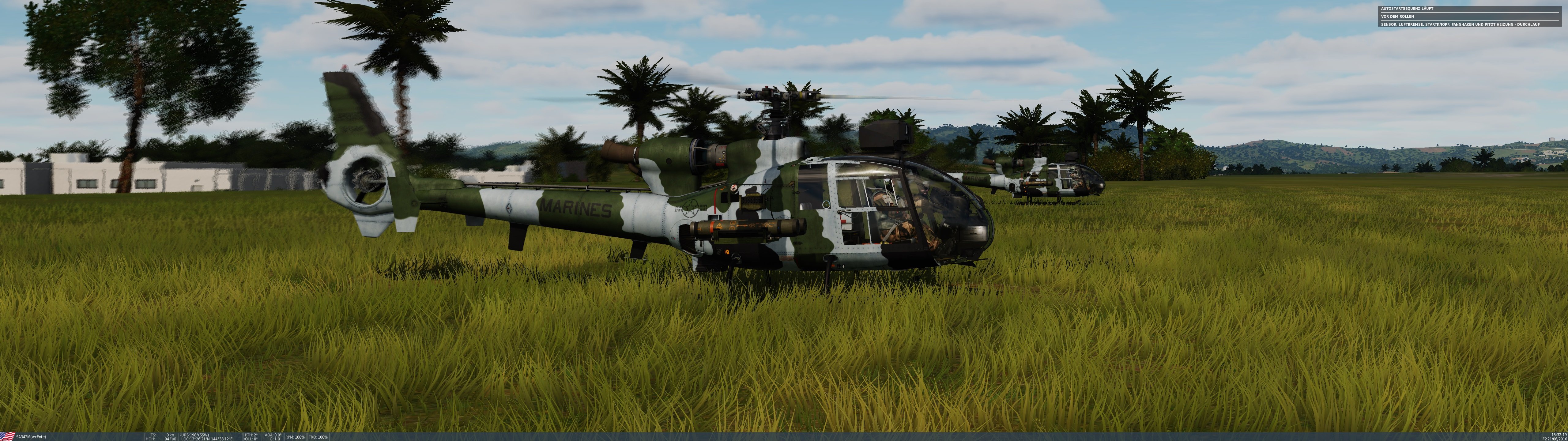 Bremspropeller Posted July 10, 2021 Posted July 10, 2021 Mit der Gazelle Aufständische auf Guam jagen, die einen Golfplatz zu ihrerm Versteck auserkoren haben. Die Gazelle scoutet für zwei Hinds. Dank der vier HOT Flugkörker kann sie auch selber auf einige Distanz ordentlich Schaden anrichten. Der Golfplatz wurde erfolgreich geräumt. Die Revolution wurde abgesagt... @MiGCap turnt über Andersen AFB herum. Pancake beim Vertikutieren des Golfplatzes. Rundflug über den Inseln mit Stefan. Stefan in seiner F-14A der VF-142 "Ghostriders". Ich in der F-14B der VF-32 "Swordsmen". Über Rota. Pancake und Blooddawn waren flaißig Schiffe versenken. Der Schütze dieses Schnellbootes dürfte Kopfschmerzen haben. Kurz vor dem Einschlag. Blooddawn im Endanflug. Nachdem @Dierk3er und Pancake die Bomber und Begleitjäger weggeputz haben, wurde es in der Dämmerung Zeit, zum weit entfernten Träger zurückzufliegen. Kurz bevor es hinab zur Case III landung auf der Theodore Roosevelt geht, könnt sich Pancake einen Schluck go-juice. 2 1