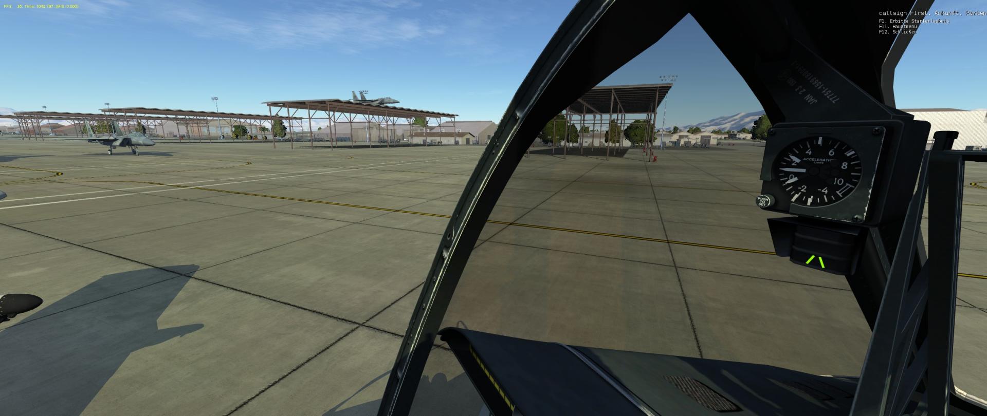 ram0506 Posted February 21, 2016 Posted February 21, 2016 Obwohl ich mich noch nicht so richtig ran traue, bin ich eben die ersten beiden Missionen der A-10C Red Flag Kampagne geflogen. Diese sind noch recht einfach durchzuführen, da es sich bei der ersten Mission lediglich um die Ankunft auf Nellis AFB und bei der zweiten um eine Familiarisierungsrunde zu wichtigen Orientierungspunkten handelt. Es musste also noch nicht geschossen werden. Bei der ersten Mission ging aber selbst mit meiner Grafikkarte die Leistung aufgrund der sehr hohen Anzahl an Objekten in der Luft ganz schön in die Knie. Teilweise nur noch knapp über 40 Frames in der Luft. Der Ablauf war aber dennoch immer noch ziemlich flüssig. Auf Nellis fiel mir gleich mal das merkwürdige Parkverhalten einer F-15 auf. Naja, die "Ego Driver" waren schon immer ein wenig überheblich. Während des recht langen Einführungsfluges habe ich die Gelegenheit genutzt und ein wenig Formationsflug geübt. Und damit man in der Kampagne nicht wieder auf die Idee kommt zu bescheißen und die Icons einzuschalten, wurden diese gleich mal schön von Haus aus deaktiviert. Aber in der wüsten Gegend sind die Ziele wohl doch etwas besser auszumachen als dies auf der Kaukasus-Karte der Fall ist. Und die Objektvergrößerung im Spiel hilft auch erheblich mit dazu.