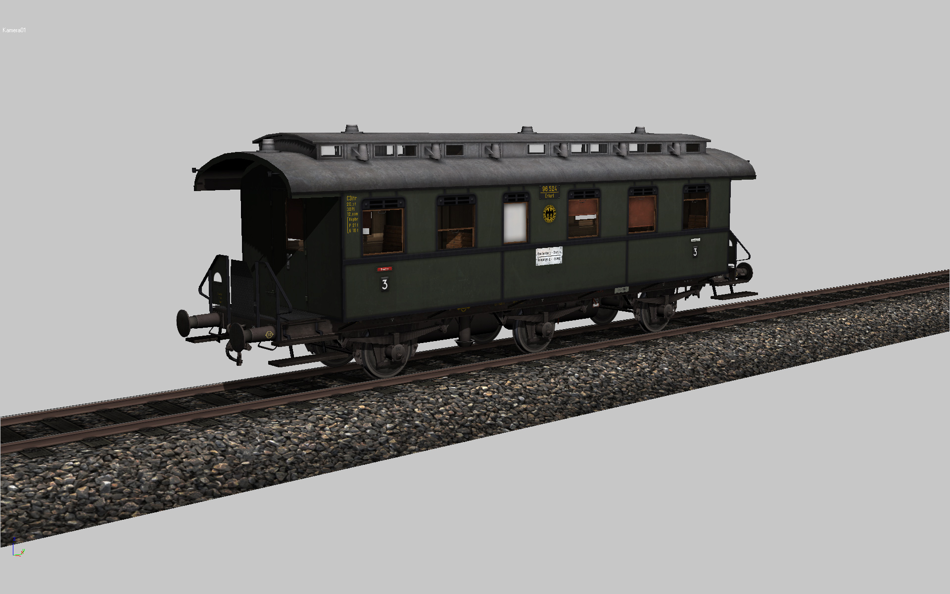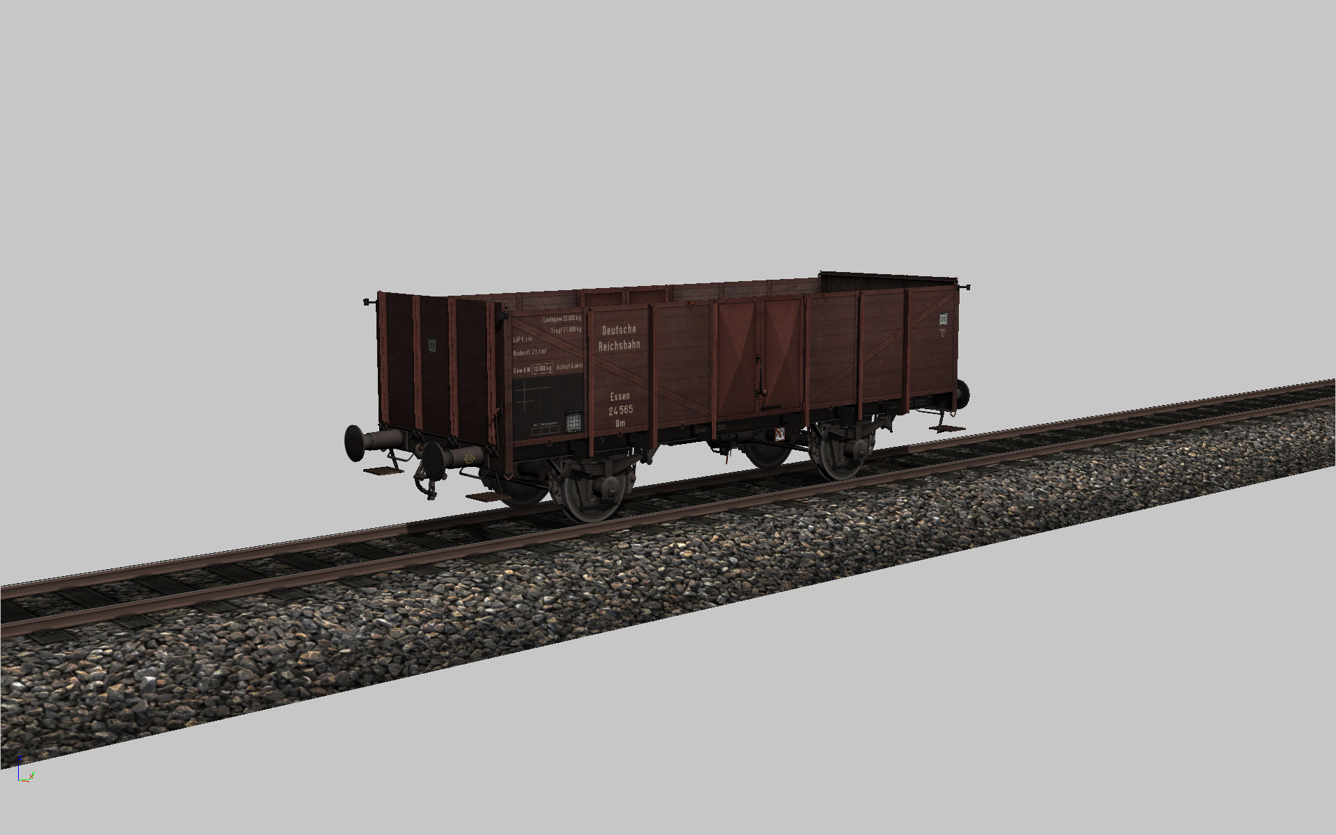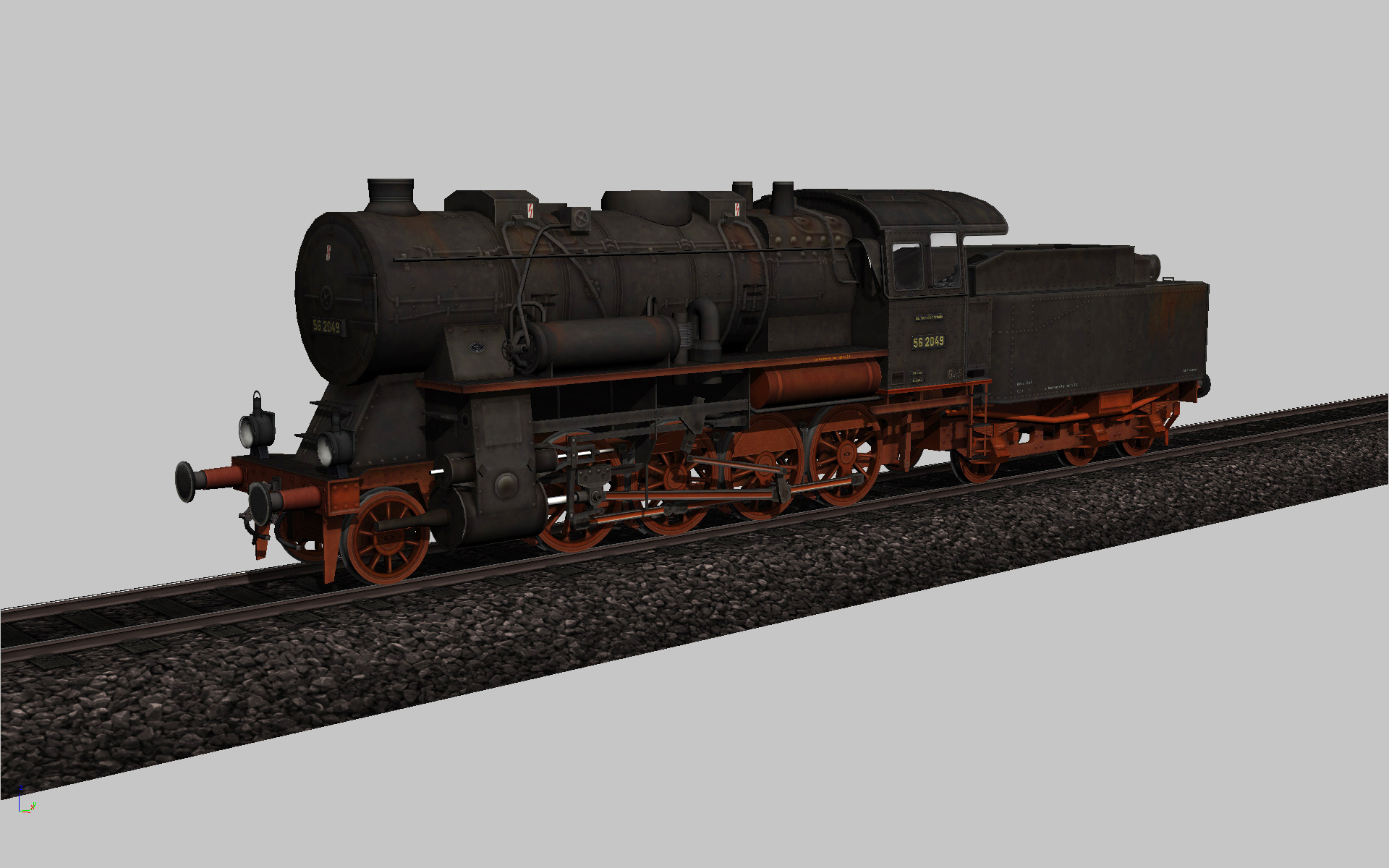 Foobar Posted November 22, 2014 Posted November 22, 2014 Hiermit mache ich meine Drohung von neulich wahr und bringe ein paar Screenshots von selbst hergestellten virtuellen Eisenbahnmodellen, die seinerzeit für Storm of War nach den technischen Vorgaben von Maddox Games entstanden sind. Anfangen will ich mit einer Reihe von Modellen, die es gerade noch rechtzeitig in den SoW-Release (was ja dann bekanntlich in Cliffs of Dover umbenannt wurde) geschafft hatten, bevor die offiziellen Entwicklungsarbeiten daran eingestellt wurden. Das war dann gleichzeitig auch das Ende meiner Tätigkeit als Additional 3D Modeller - jedoch nicht das Ende meines Engagements im virtuellen Modellbau, was Eisenbahnen betrifft. Bis zum heutigen Tag habe ich seit 2005 neben zahlreichen Gebäudemodellen mehr als 60 populäre, jedoch auch teils extrem rare Eisenbahnfahrzeuge mühsam recherchiert und als LOD0 gebaut. Jetzt also geht es los mit der BR 56 (ex. preuß. G8.2) und dem dazugehörigen Schlepptender 3 T 20 (pr.), dem gedeckten zweiachsigen Güterwagen G 10 des Gattungsbeziks München und einem privaten Kesselwagen Z der Verbandsbauart (das Z steht für Zisternenwagen). Die Bilder sind Fullscreen-Viewport-Screenshots direkt aus 3dsmax 2009 ohne irgendwelchen Render-Schnickschnack (lediglich Schatten ist eingeschaltet). Das fehlende Anti-Aliasing bitte ich zu entschuldigen, das geht in der Version 2009 leider nicht Zu jedem Modell gehört eine individuelle handgemalte Haupttextur (i.d.R. 1024x1024 Pixel) sowie zwei kleinere Nebentexturen für Beschriftung und gemeinsam benutzte Bauteile (z.B. Radsätze, Bremsanlage, Puffer, Haken, Schläuche usw.). Die Modelle bestehen in aller Regel aus etwa 1000 Mesh-Dreiecken je Meter Originallänge (LüP) - zumindest strebe ich dieses Limit beim Bau an und bin bisher immer ganz gut hingekommen. Geometrisch anspruchslose Fahrzeuge haben dann entsprechend weniger Dreiecke.Ich hoffe, dass ich hier mit dem Thema Eisenbahn niemandem auf die Nerven gehe, und wünsche denjenigen, die sich dafür interessieren, viel Spaß. Weitere Bilder folgen im Blockabstand. Ladet Euch die Bilder gerne herunter, bei mir laufen sie übrigens als Desktop-Hintergründe und wechseln alle 30 Minuten per Überblendung. Das ergibt tolle Effekte. 3
