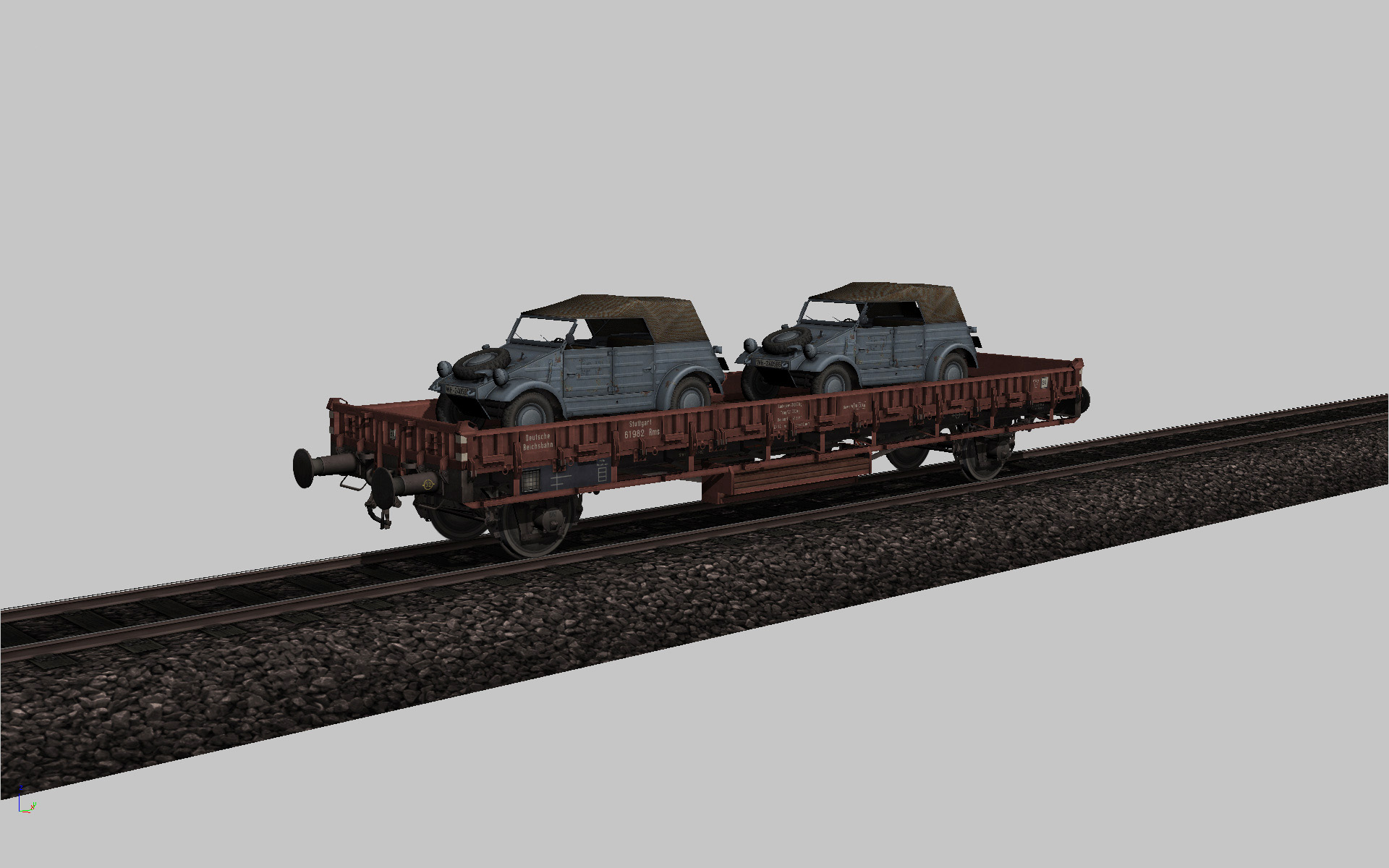 Foobar Posted November 27, 2014 Author Posted November 27, 2014 Neben Eisenbahnmodellen habe ich auch eine Reihe von Gebäuden (die kommen später dran) und Kraftfahrzeugen gebaut. Weil es hier jedoch um Eisenbahnen geht, muss ich einen Trick anwenden, um nicht das Thema zu verfehlen Auf dem Ommr im linken Bild ist ein Büssing 500 S verladen. Er zählt zu den schweren Einheits-LKW mit 4,5 Tonnen Nutzlast. Sie wurden unter anderem von Mercedes-Benz, Magirus und Büssing-NAG gebaut und unterschieden sich eigentlich nur im Führerhaus und bei Motor. Solche LKW wurden von der Wehrmacht, Luftwaffe, Marine und NSKK eingesetzt. Der Rms in der Mitte ist mit zwei Kfz 1 beladen, besser bekannt als VW Typ 82 (Landserjargon "Kübelwagen"). Beim R-Wagen wurden die Rungen aus den Rungentaschen genommen und in die seitlichen Rungenfächer gestapelt. Übrigens: dieses Kübelwagenmodell entstand damals für RO, wo man auf meiner Karte "Alte Ziegelei" damit durch die Gegend brettern konnte. Die Motorgeräusche wurden von Olaf beigesteuert. Rechts steht ein geländegängiger Einheits-LKW (2,5 t) auf einem Flachwagen genannten abgebordeten Ommr Linz. Im Landserjargon hieß der LKW schlicht "Einheitsdiesel". 1
