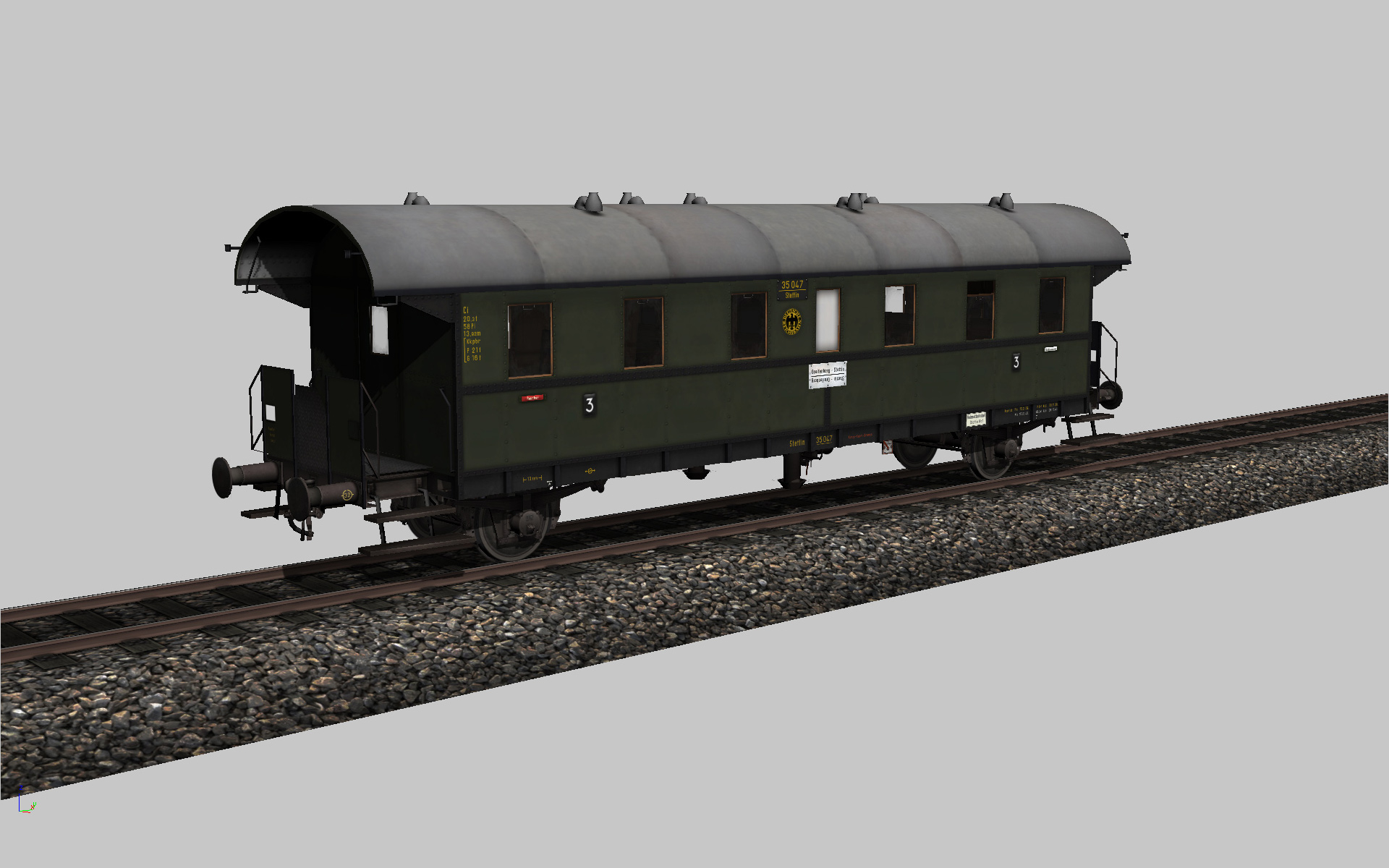 Foobar Posted November 23, 2014 Author Posted November 23, 2014 Thank you, Friendly Flyer. Always glad to see others interested in railways. Jetzt komme ich zur Abteilung Reisezugwagen. Ist ja für ein Spiel mit militärischen Aspekten eher von untergeordneter Bedeutung, die ethische Frage will ich erst gar nicht beleuchten. Im linken Bild seht Ihr einen Personenzugwagen preußischer Bauart Ci-05 pr. Solche Wagen mit Holzaufbau und Gaslaternenbeleuchtung (daher auch der große Gastank am Unterboden) wurden seit Anfang des 20. Jahrhunderts für die preußische Staatsbahn hergestellt und massenhaft auf Nebenstrecken eingesetzt. In der Mitte ist ein Wagen abgebildet, dessen Kosenamen wohl jedermann schonmal gehört hat: Donnerbüchse. Typ Ci-28. Diese Wagen wurden für die Deutsche Reichsbahn sozusagen als Schnellbeschaffungsmaßnahme nach dem Ersten Weltkrieg massenhaft hergestellt, weil sich Frankreich so ziemlich alles brauchbare Rollmaterial als Reparationsforderung unter den Nagel gerissen hatte. Die Wagen besaßen einem Blechaufbau, der vollkommen unisoliert war und während der Fahrt entsprechend dröhnte. Daher der passende Name. Rechts noch ein Schnellzugwagen vom Typ C4ü-36 mit Drehgestellen des Typs Görlitz III (leicht). Solche Wagen waren die Vorläufer der modernen D-Zug-Wagen, wie wir sie alle kennen. Das Gattungszeichen von Reisezugwagen gibt Auskunft über die Innenausstattung (A = 1. Klasse, B = 2. Klasse, C = 3. Klasse), wobei erste und zweite Klassen damals vom Volksmund noch als "Polsterklasse", sowie dritte und (bis 1928) vierte als "Holzklasse" bezeichnet wurde. Die Zahlen hinter dem Strich bezeichnen das Jahr, in welchem das Fahrzeug konstruiert wurde (hat also nicht zwangsläufig etwas mit dem Baujahr zu tun). Das Nebengattungszeichen i steht für einen Durchgangswagen mit offenen Wagenübergängen. Das Nebengattungszeichen ü bezeichnet einen Drehgestellwagen mit Durchgang und geschlossenen Faltenbalgübergängen (Nebengattungszeichen von Reisezugwagen haben nichts mit denen von Güterwagen zu tun). Übrigens, das Wort D-Zug kennt wahrscheinlich noch der eine oder andere unter uns. Dabei steht das D für Durchgang, was nicht etwa bedeutet, dass der Zug überall durchgeht, sondern dass die Reisenden innerhalb des Zuges von vorn bis hinten durchgehen können. Damals war das nämlich keine Selbstverständlichkeit, wo noch sehr viele Abteilwagen mit Außentüren für jedes einzelne Abteil unterwegs waren (da musste man dann bei der Ankunft des Zuges am Bahnsteig schon richtig stehen, um den gewünschten Sitzplatz zu treffen). Reisezugwagen der Deutschen Reichsbahn waren damals in Braungrün angestrichen, ab 1936 dann im etwas helleren Flaschengrün. Der Unterboden, Griffe und Blechkanten waren schwarz. Dächer wurden im Farbton Weißaluminium gestrichen, was jedoch schon nach sehr kurzer Zeit ziemlich grau aussah.