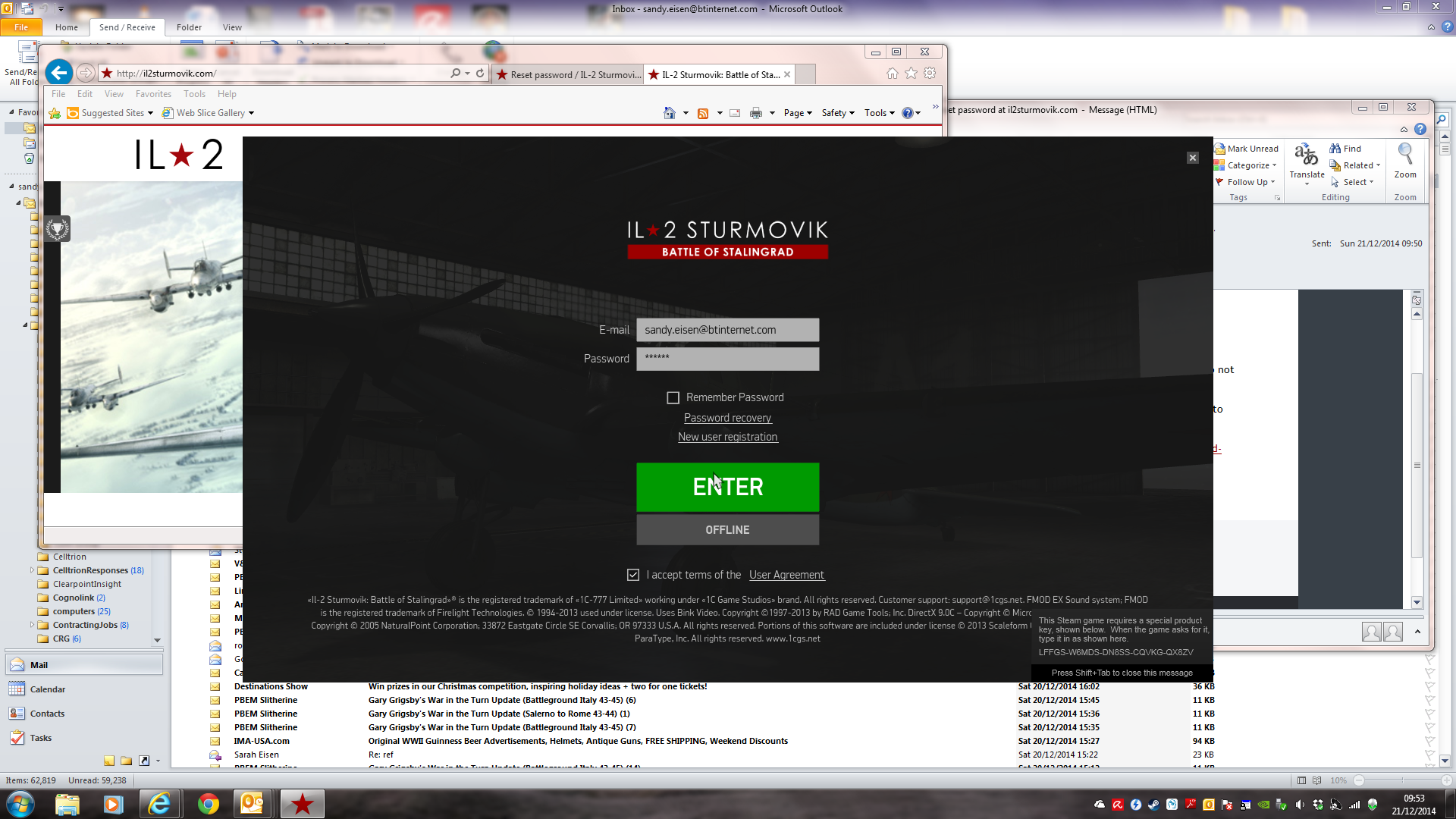 Adj Posted December 27, 2014 Posted December 27, 2014 I also had this problem. Steam supply you with a license key, copy this to the clipboard. You have to use the link vonPlisner has provided and paste the Steam provided key in to the license key box. The ICS password and e-mail you have already set up will allow you entry to the site to do this.