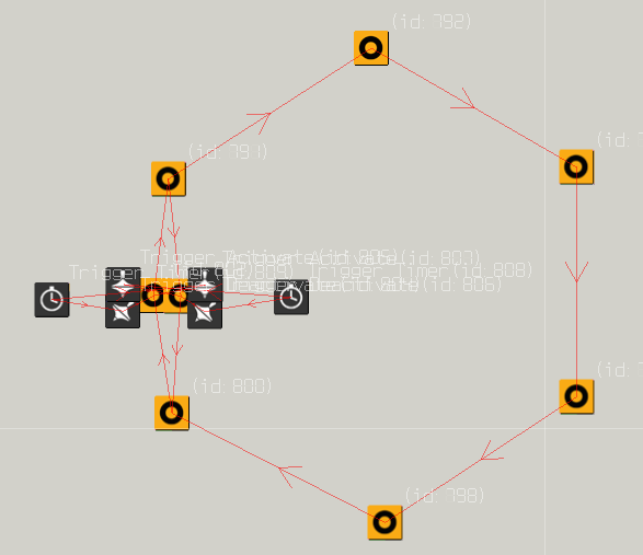 =SqSq=Civilprotection Posted December 28, 2020 Posted December 28, 2020 So I am almost ready to release the moving frontline system to the community. But before I do, I need to explain one or two of the basic systems that go into each individual hex. In this post I will talk about the basic logic that resides within every wall of every hex. So I'm sure you are all aware that to have a continuous frontline, a mission maker must link several icon MCUs all in the same direction. Similarly, for circles and hexagons, all of the frontlines must be linked consistently-- either clockwise or counterclockwise. However, when we start to place hexes next to one another, there starts to be an issue of direction. At every border between hexes, the arrows are pointed in counter directions. So, what is needed is a more adaptable wall. This^ is basically that more flexible wall. It is essentially a really thin diamond. the top and bottom icon MCUs are anchor points, and are always active. The two middle icon MCUs dictate the direction of the line. When the left icon is activated and the right icon is deactivated, then the line direction will be up. When the right icon is activated and the left icon is activated then the line direction will be down. And just as importantly, when both of the icons are deactivated, then no line is drawn at all. This covers the four ownership possibilities needed for the whole system to work. Team A is on the left and team B is on the right => up arrow, Team A is on the right and team team B is on the left => down arrow, team A is on the left and right => no arrow, and team B is on the left and right => no arrow. Not super hard stuff right. and of course, each wall of the hex must have this dynamic wall system. Now that you have seen the easy example, let us compare it to a wall from the actual module. *note that the anchor points are out of the frame I am hoping to have the hex fully released before the new year with usage instructions and everything. I just want to repeat that I am looking for testers to help me in multiplayer, so if anyone has the time and the inclination... I hope the above^ was an interesting read. Until next time, Cheers! 2 2