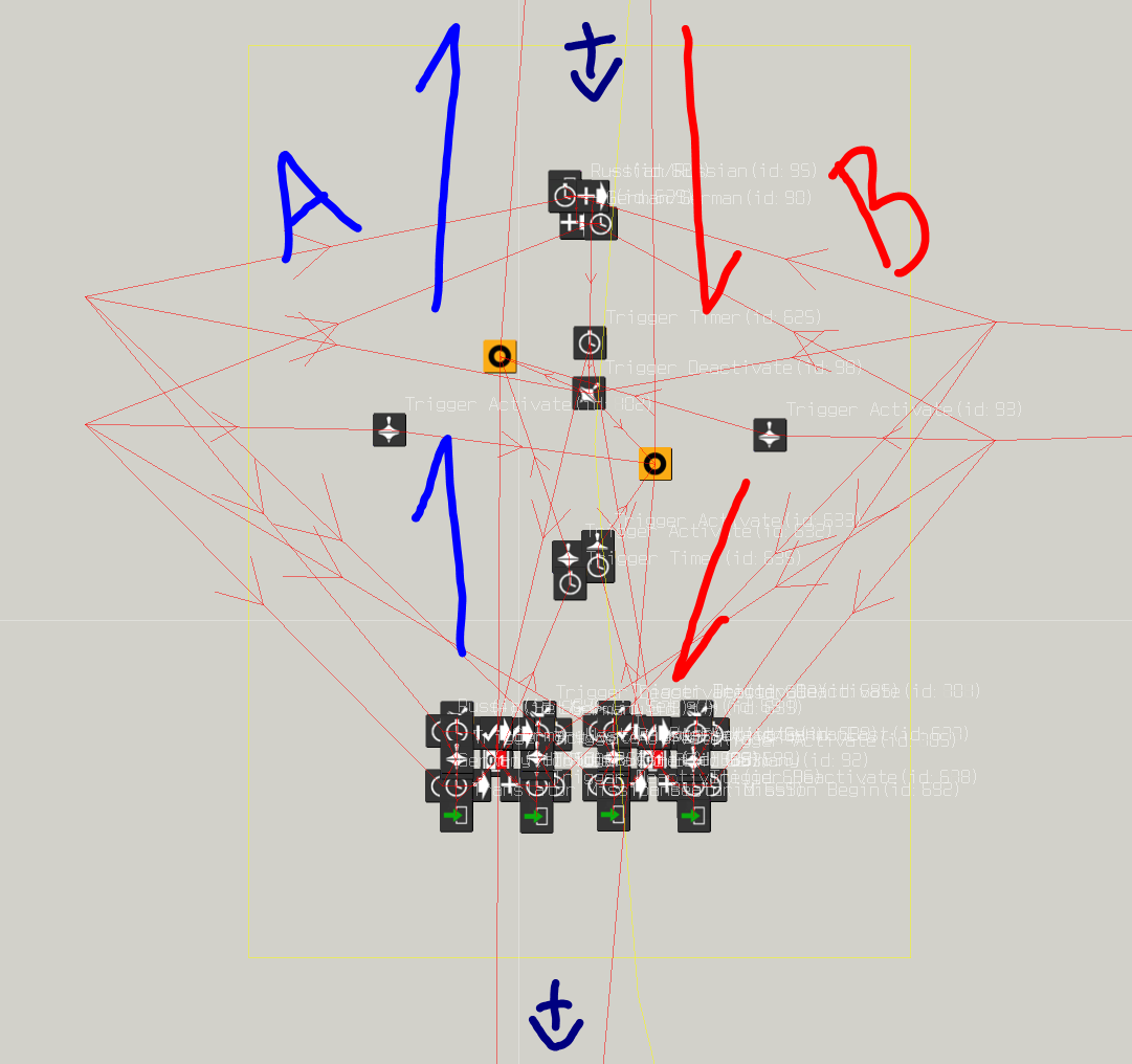 IRRE_Genius Posted December 28, 2020 Posted December 28, 2020 I can try to test 10 hours ago, =SqSq=Civilprotection said: So I am almost ready to release the moving frontline system to the community. But before I do, I need to explain one or two of the basic systems that go into each individual hex. In this post I will talk about the basic logic that resides within every wall of every hex. So I'm sure you are all aware that to have a continuous frontline, a mission maker must link several icon MCUs all in the same direction. Similarly, for circles and hexagons, all of the frontlines must be linked consistently-- either clockwise or counterclockwise. However, when we start to place hexes next to one another, there starts to be an issue of direction. At every border between hexes, the arrows are pointed in counter directions. So, what is needed is a more adaptable wall. This^ is basically that more flexible wall. It is essentially a really thin diamond. the top and bottom icon MCUs are anchor points, and are always active. The two middle icon MCUs dictate the direction of the line. When the left icon is activated and the right icon is deactivated, then the line direction will be up. When the right icon is activated and the left icon is activated then the line direction will be down. And just as importantly, when both of the icons are deactivated, then no line is drawn at all. This covers the four ownership possibilities needed for the whole system to work. Team A is on the left and team B is on the right => up arrow, Team A is on the right and team team B is on the left => down arrow, team A is on the left and right => no arrow, and team B is on the left and right => no arrow. Not super hard stuff right. and of course, each wall of the hex must have this dynamic wall system. Now that you have seen the easy example, let us compare it to a wall from the actual module. *note that the anchor points are out of the frame I am hoping to have the hex fully released before the new year with usage instructions and everything. I just want to repeat that I am looking for testers to help me in multiplayer, so if anyone has the time and the inclination... I hope the above^ was an interesting read. Until next time, Cheers! I can try to test, maybe a specific post will be more relevant ?