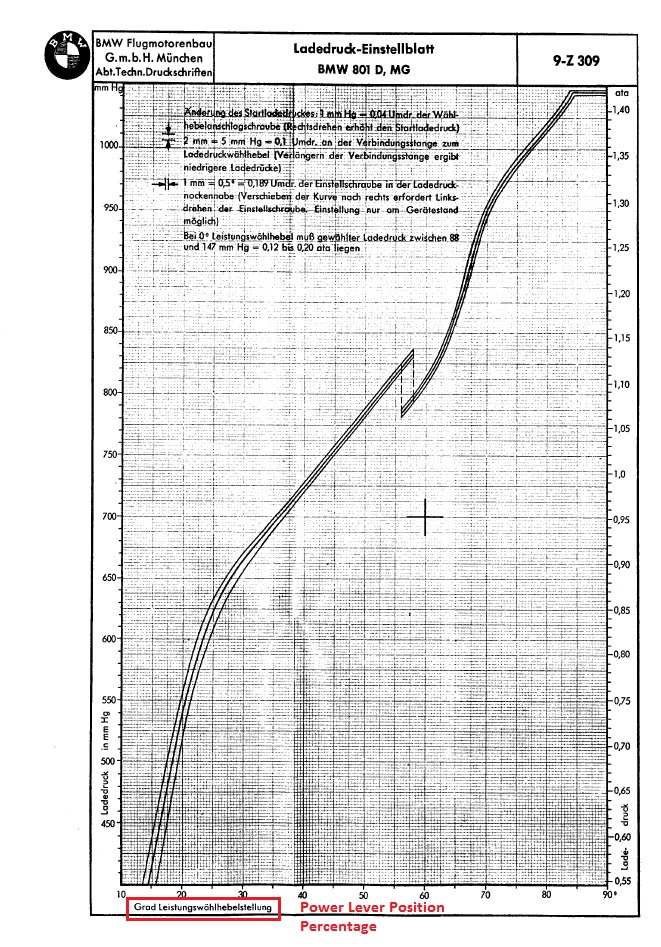 Crump Posted November 3, 2015 Posted November 3, 2015 A Kommandogerät reading the throttle position only would adjust RPM indipendently from boost pressure, means once boost pressure drops the K.Gerät holds RPM steadily. It does not read throttle position only, that is a fact. The pressure capsules on the supercharger and manifold pressure regulator do keep the linkage aligned so that the throttle position always corresponds to a manifold pressure/rpm setting no matter what the density altitude. Throttle position never changes to the pilot and full forward is 1.42ata @ 2700U/min in the summer, winter, and everything in between very much like a modern FADEC system. The Kommandogerät basically maintains a specific fuel to air ratio which if you know engine performance, is the basis for power production. It has a "cruise range" where that ratio is maintained for best economy and "high power" range where the ratio changes to maintain best power. That changeover point in fuel to air ratio logic represents the big break in the throttle position chart posted above.