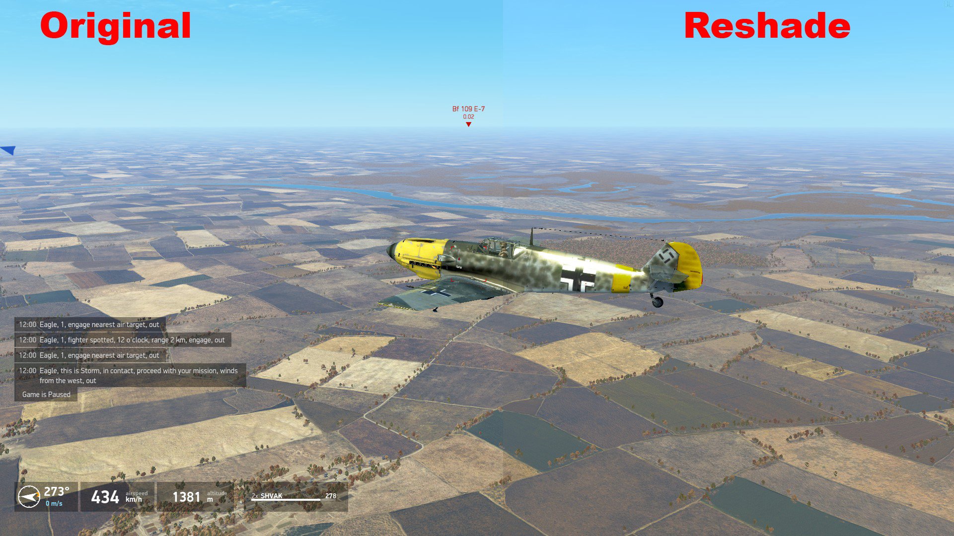 wonders9 Posted November 11, 2019 Posted November 11, 2019 (edited) On 3/6/2019 at 4:23 AM, Livai said: @JG700_Benek With color correction I mean the result that comes out when the color space is changed from adding BGR, GBR, BBR.......to the RGB-Channel. I had problems with original reshade shaders to find that what I search for, so I started to write my own. Looking what is possible without to break the FPS too much. I noticed that Post-processing effects are not a good idea to use it for Overhauls because what can be done is very limited. I beated Reshade to death already trying everything always ends with that - one color will break unwanted. The problem is also what colors the game use or how the color are mixed together. Could it be that yellow and blue colors in the game are a little greenisch, it looks like so. The whole in-game colors are skewed when compared it to IL-2 Team Fusion. I noticed it too, when I look at the screenshots in adope photoshop that the colors are not correct when I take a sample from the screenshot and compare it with the texture. Looks like the IL-2 shader use a filter over the original image turn this off will do something. Here another Custom Shader with different approach what I upload when I am ready for upload. For your Custom Shader to work, as in these screenshots, is it necessary to check the "Mods On" option in game setttings? I, too, feel that the BoS sky looks too greenish. Edited November 12, 2019 by wonders9