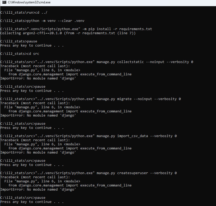 Orel_Ninos Posted September 27 Posted September 27 When updating statistics 1.2.86, this error is thrown: c:\Program Files\il2_stats\run>cd ../ c:\Program Files\il2_stats>".venv/Scripts/python.exe" -m pip install -U --quiet -r requirements.txt The system cannot find the path specified. c:\Program Files\il2_stats>pause Press any key to co Please advise