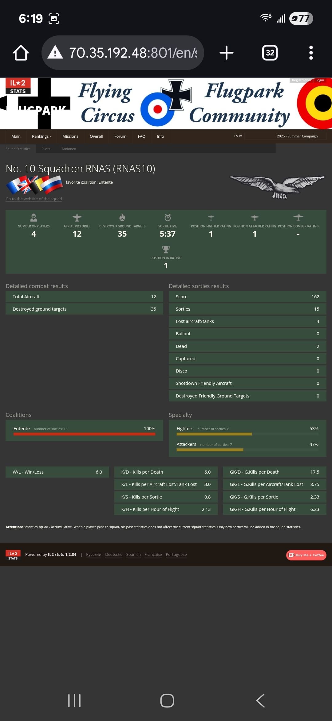 RNAS10_Mitchell Posted July 3 Posted July 3 (edited) @=FB=Vaal Hello =FB=Vaal. Would you please help me understand why these squadron totals are all different? On one, adding up the pilots virtual life totals sums to a 205 calculation. On another screen, it shows our squadron score as 94. On another it shows a squadron total of 162. Im very confused. Thank you. Also.. its a new quarter, and there are very few sorties, so these differences are quite obvious. The individual pilots virtual life scores do not match what is reported under the squadron individual totals as well. Edited July 3 by RNAS10_Mitchell