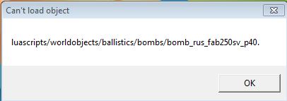 bzc3lk Posted October 2, 2015 Posted October 2, 2015 I'm getting the old can't load object pop up and thena crash when I try to play back tracks we recorded last night will flying the P-40 carrying 250/500 bombs. Has anyone managed to play tracks with this configuration yet? I am probably going to reinstall unless everyone else has the same problem. crash_p40.JPG I have the same message displayed,but my game doesn't crash. I click on the "OK" icon and the replay plays as per normal.