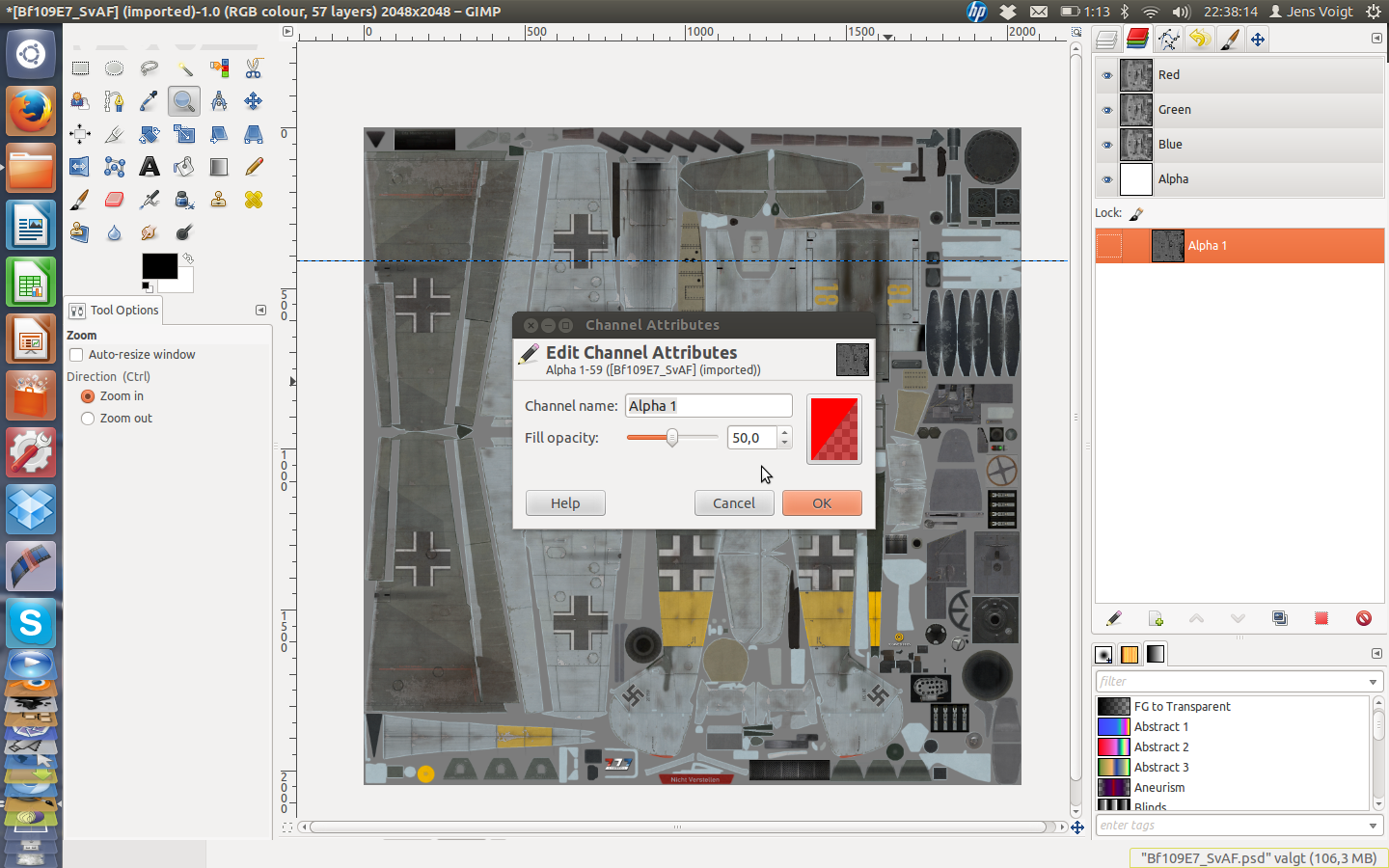 6./ZG26_Loke Posted November 14, 2015 Author Posted November 14, 2015 @ 9./JG27golani79, I will get back to you on that later, as I'm not on my Win7 right now. @ Stab/JG26_5tuka. No not tried to open it in PS, yet! The Alpha channel layer, is this the right I posted? From GIMP.