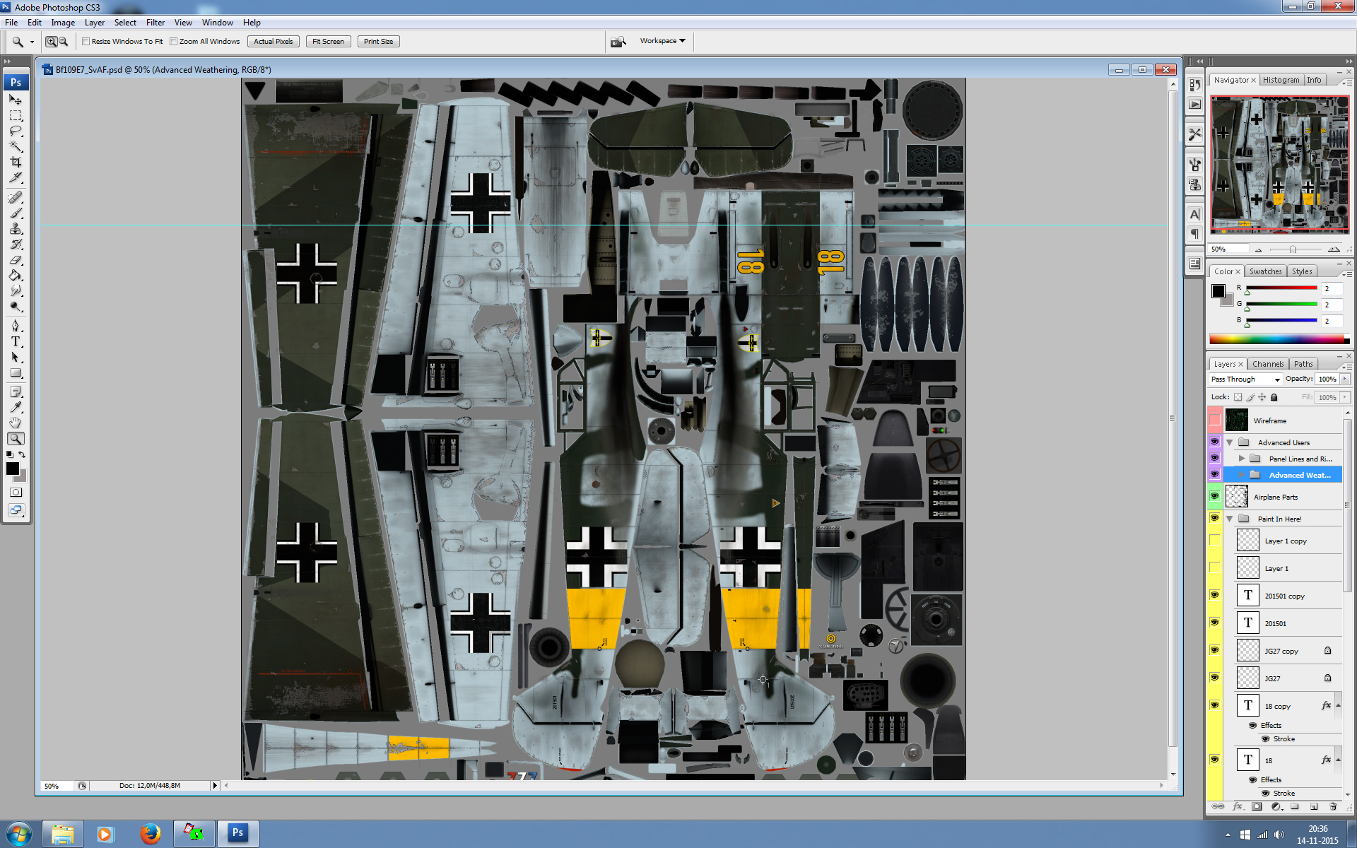 SvAF/F19_Klunk Posted November 14, 2015 Posted November 14, 2015 (edited) i have no clue how gimp deal with the alphachannel... alpha is user for grade of reflection of the fuselage.. I seem to recall 50% grey is the most "shiny". cant u export the skin from cs to dds? to me too it seems to be an alpha channel issue.... can u take a screen on the alphachannel from cs Loke? tab "channel" and let us see if the greys looks like they should it also looks like u have an issue with pixelization of the weathering around gear and wing edge.. the egde ofe the weatherings area seems very pixelated and... a litte bit dark? Edited November 14, 2015 by SvAF/F19_Klunk
