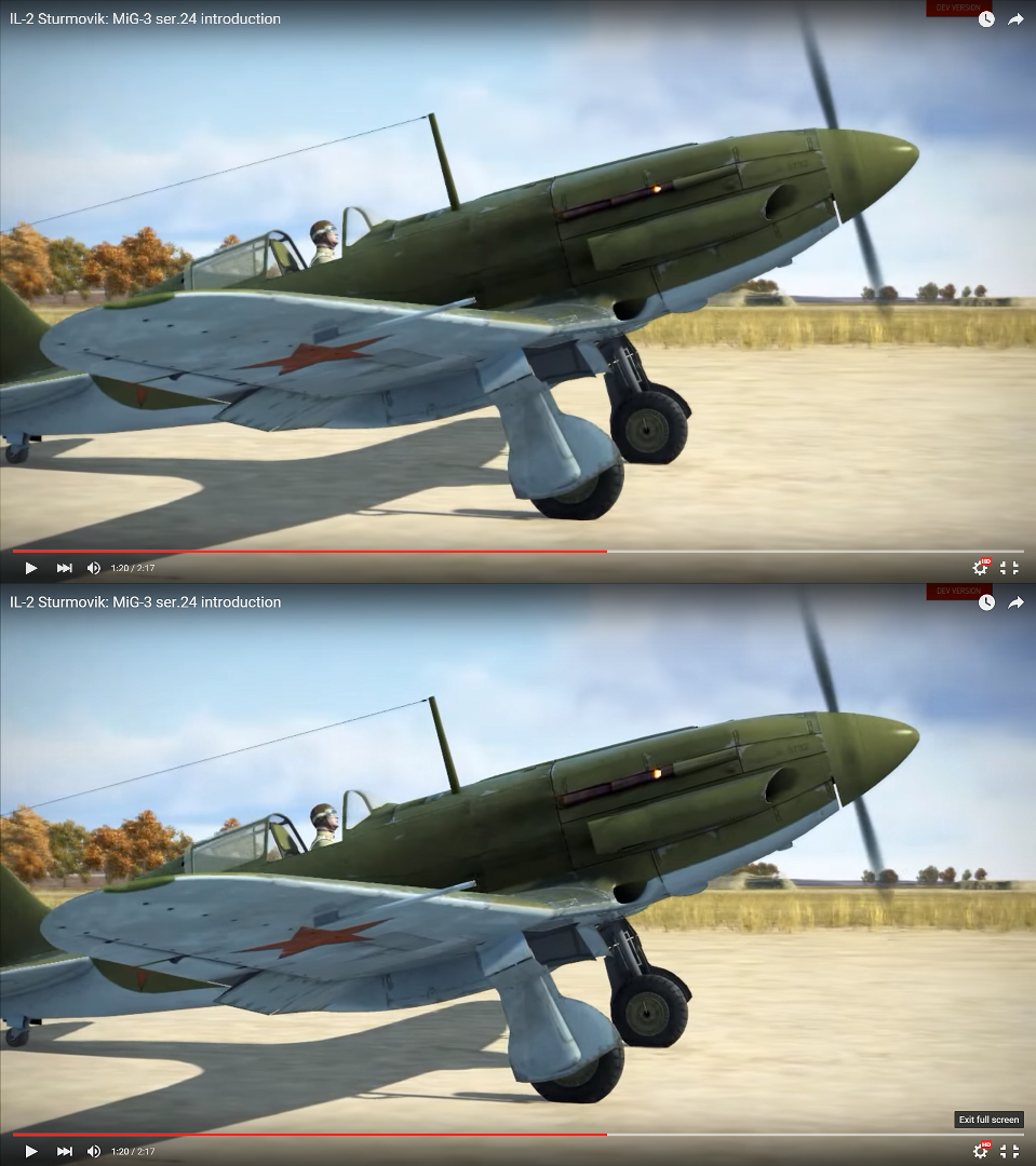 Finkeren Posted December 4, 2015 Posted December 4, 2015 MiG-3 in this video got 2xUBS or 2x Shvak ? It would be great to have all the historical combinations Imposible to tell. As far as it's known, there was no external difference between the differently armed version, they might even still have had the gun port for the central UBS, despite it not being used. Btw: I'm pleased to see, that they modeled the MiG with the inert gas system similar to the LaGG (visible in the small tube fitted just above the rear exhaust stack on the left side) That should make the bird considerably less prone to burst into flames.