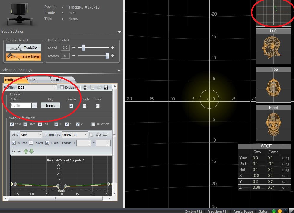 Remontti Posted December 13, 2015 Posted December 13, 2015 (edited) Since the TrackIR is working in game, I would look cause for the problem in TrackIR profile.-in TIR use the view that shows reflections / lights and check if they change color from green to red when you turn your head. If they turn to red they are moving out of cameras view.-check what profile TIR loads when starting BOS.- increase yaw sensitivity if necessary- check what keys you have assigned in TIR for non-BoS profiles and disable them if necessary. With the profile-key you can use multiple profiles in game. Maybe you're accidentally switching profiles in game? EDIT: I don't know how familiar you're with TrackIR software but here are couple of pics For example here is my DCS (quite different from my BoS profile) that will get activated if I press Insert-key. In the Top-Right corner is the camera view. Check also that those green dots are in the center when you look forward and adjust camera angle if necessary. Check here if your desired profile is loaded when launching BoS. Edited December 13, 2015 by Remontti