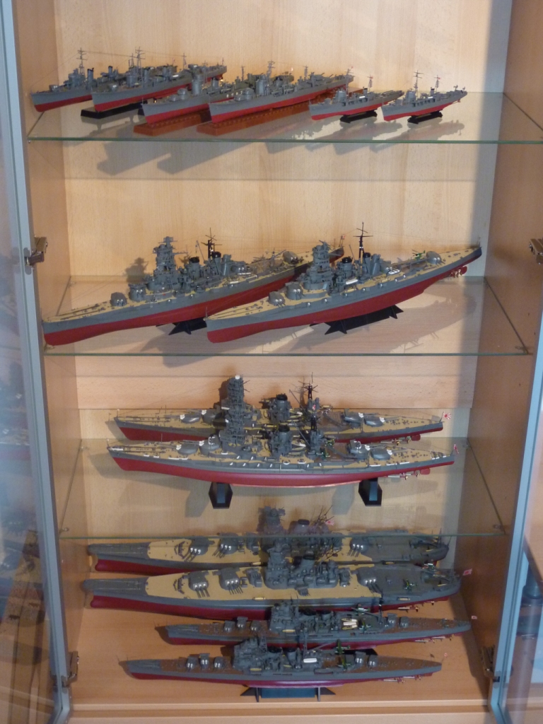 JtD Posted December 19, 2013 Posted December 19, 2013 Mir fiel gerade ein, ich wollte ja auch mal ein Bild meiner Modelle zeigen. Nicht ganz so liebevoll gemacht wie die hier gezeigten Flieger, aber vielleicht reduziert es ja die Hemmschwelle anderer Hobbybastler. In diesem Sinne auch ein Bump, we hat noch was zu zeigen? Bei mir sind es Schiffe in 1/350, die Flieger auf den Katapulten haben also eine Spannweite von etwa 3 cm. Anbei der Großteil meiner Kaiserlichen Japanischen Marine, so wie sie gedrängt im Schrank steht.