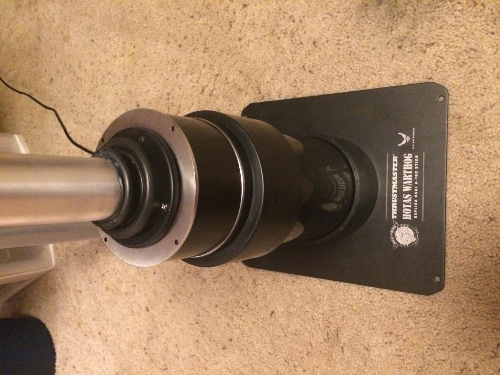 CJN221 Posted February 8, 2016 Posted February 8, 2016 Got my extension in a few weeks ago and just finished my project. I bought 4 inch pipe and two end caps at the hardware store along with some nuts and bolts. I attached one end cap to the base plate and the other to the stick. I measured exactly how long the main pipe had to be which was exactly 7 inches. I cut it and inserted it with 3 big rocks in the main pipe for extra weight and stability. I had tried increasing the tension of the main spring with no luck. I had tried putting in two big springs, placing pennies under the spring, and anything else you can think of with no luck what so ever. I accepted the fact that I was not going to increase the resistance internally so I went to external solutions. I then got the rubber circular thing that went around my old thrustmaster topgun, and inserted it on this stick. The stick feels amazing, with the rubber around it increasing resistance like I wanted, and allowing just the right range of motion. Here are some pictures. Feel free to ask any questions.