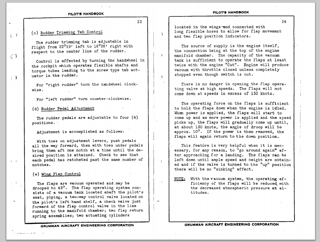Dakpilot Posted January 25, 2016 Posted January 25, 2016 I think the F4F had electric flaps? Anyway, Kermit probably explains it in his video on the F4F. If you haven't seen his channel then search Fantasy of Flight on YouTube, there's some great content there. sigh.... check the page from the manual 3 posts up (pneumatic but vacuum rather than pressure) his channel is great, if anyone gets the chance, his place is definitely worth a visit, no where else to see a flyable Sunderland (at least when i was there) F6F Hellcat has hydraulic flaps actuated by electric switch with backup hydraulic selector in case of electrical failure, they can be set to automatically deploy (spring loaded) when speed drops below 315 kmh and will be fully deployed at 172 kmh, but they (flaps) are very different to F4F and Yak Cheers Dakpilot Cheers Dakpilot