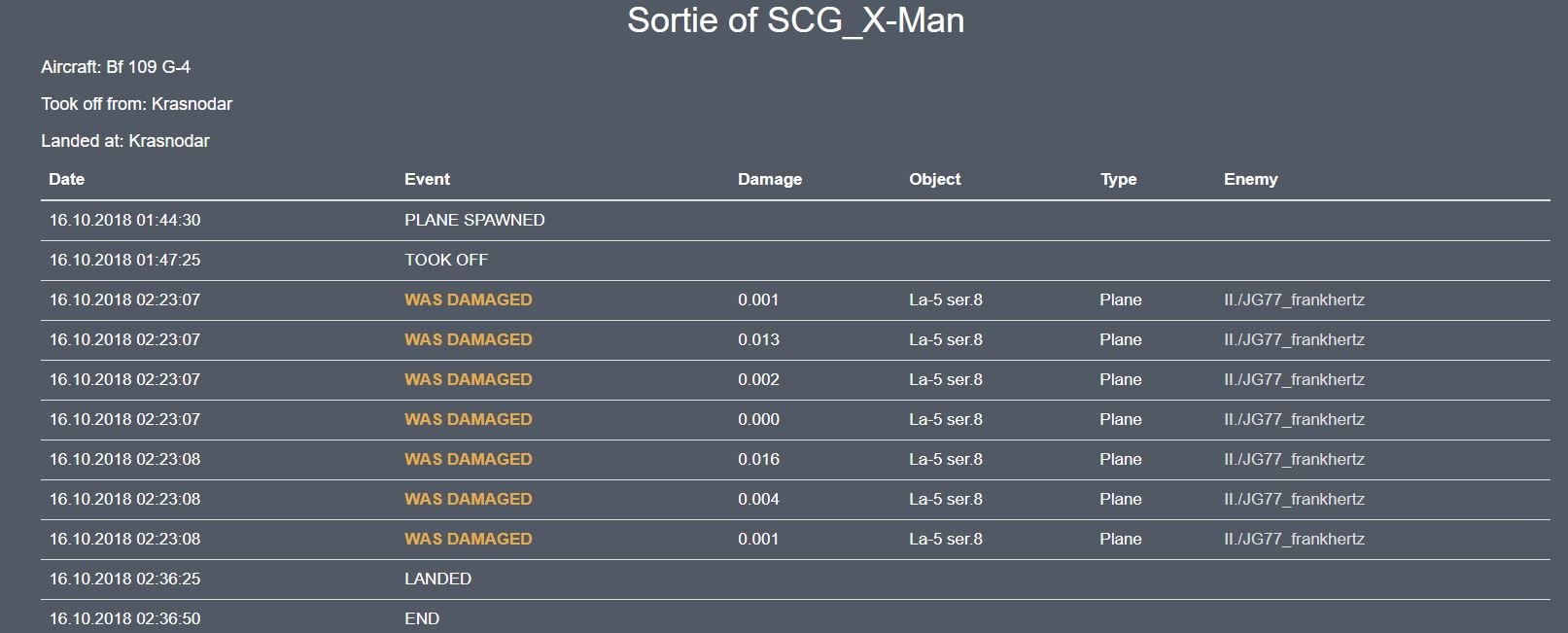 SCG_Schneemann Posted October 15, 2018 Posted October 15, 2018 Well, whatever... not sure on the time stamp thing. Basically he waited for someone to teamkill (against the rules), immediately disconnected. Permanent ban in my opinion. Look at his flight log... amateur hour. Pissed off as in my squadron it was a dead is dead mission, just to have some numbnut pull crap like that... 1