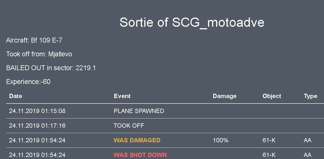 Pict Posted November 24, 2019 Posted November 24, 2019 (edited) 11 hours ago, =LG=Kathon said: You took off from Kubinka which was damaged more then 40% in that mission. To fly transport you have to take off from airfield damaged less then 40%. I will add chat info if you spawn as transport plane on the airfield damaged more than 40%. You got +1CM because of flight more than 15min as a bomber without any AK/GK. That makes sense, I forgot to check the base damage levels. Just getting back into the swing of it, thanks. 8 hours ago, SCG_motoadve said: Got shot down by flak, was at 5K , I would not mind it really, if flak was all around and I get hit by it, but the first AA shot and instant hit? ? Looking at your TAW stats for that sortie, we can see where this happened and what hit you. So it should be possible to stress test this by flying around that sector at 5k in a 109E-7 and see how repeatable it is. I'd be up for doing that boring task off line. You didn't happen to record a track? http://taw.stg2.de/pilot_sortie.php?id=18815&name=SCG_motoadve Edited November 24, 2019 by Pict