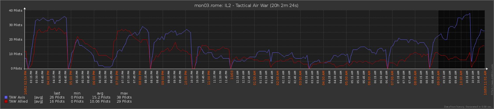 [TWB]Pand Posted October 3, 2016 Posted October 3, 2016 12 hours with german supremacy. Is that i got! Yesterday i start with 20 germans vs 10 Russians - 21:00 hrs -3 GMT Today 10:00 hrs -3 GMT - 38 Germans 7 Russians. Russians have supremacy for about 4 hours and do more on ground. Here is the current trend of pilots and their coalition from the time the server was stable until now. FYI - The time scale is represented for USA/Eastern. 1