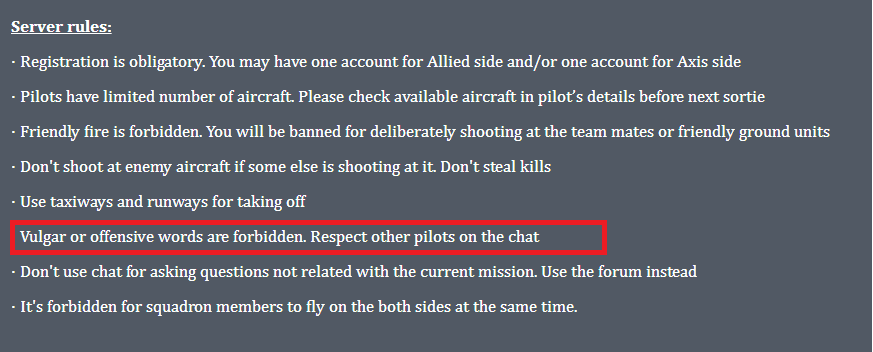 Gustav_Hagel Posted December 27, 2019 Posted December 27, 2019 @=LG=Kathon Are there any rules regarding offenses in the server? There's a specific player calling out others pus**** and spamming in the gamechat, annoying every player from the enemy team and being unsportsmanlike. 1