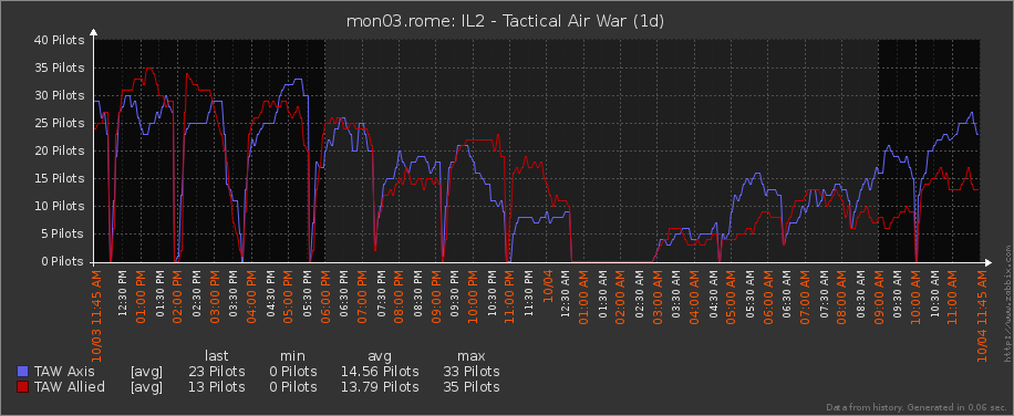 [TWB]Pand Posted October 4, 2016 Posted October 4, 2016 I basically like the idea, I do think however that lowering for the teams with higher numbers is a bit unfair, especially for groundatrackers who are also confronted with AAA. If you use the ratio just for the outnumbered team it would be fair in my eyes. Double the enemies, double the combat missions. It could be checked after the first 15 min of mission time to have a timeframe for the server to fill up after a maproll. I envisioned it checking the numbers every 5 minutes (or more) throughout the mission and then taking the average of the numbers through the entire 1 hour and 45 minute mission. I believe it should go both ways, hurts the overpopulated team, and help the underpopulated team. This may help encourage those Fighter Only style pilots to broaden their horizons with an attacker or bomber from time to time. Right now the numbers are rotating with more Germans during the day and more Russians at Night. I'll attach the last 24 hour population. Thanks for the feedback on the idea gents! Salute! 1