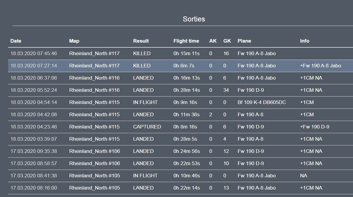 WokeUpDead Posted March 18, 2020 Posted March 18, 2020 I noticed something in sortie results that I haven't noticed before, I hope someone can explain a couple of things to me. I screenshoted SCG_FeuerFliegen's sorties here (http://taw-server.de/pilot.php?name=SCG_FeuerFliegen), but I have seen this in other pilots' sortie summaries too: In the second sortie from the top, why was a FW-190 A-8 Jabo awarded despite being killed in that sortie? At first I thought it's a plane recovered after a ditch, but I don't see a record of a ditch in previous sorties. It's not a +1 plane either. Similar question about the Dora awarded in the seventh sortie from the top. Second question: what's the difference between a +1CM and a +1CM NA? 1