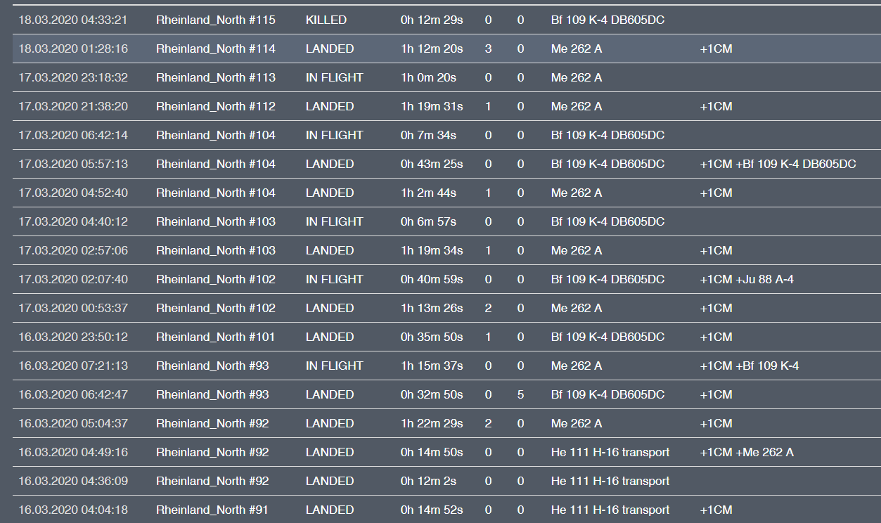 Falkenstein Posted March 19, 2020 Posted March 19, 2020 35 minutes ago, adler_68 said: i'm sure i did not see anything about this in the manual . if i missed it then pls excuse my oversight . From what I've seen, it's not on the manual webpage itself, I found it linked to in the changelog on the bottom of the webpage. May of 2019 gives us · 12.05.2019 Quote To reduce number of “suicidal” sorties there are 3 lives for each map (there are 8 maps in total during the campaign). If pilot dies, captured or disco his live counter is reduced by: 1 when he is in bigger team X when he is in smaller team where X = #smaller_team/#bigger_team. Example: Axis players: 28, Allied players: 20 so X for Allied is 20/28 = 0.71. Every time “Lives on map” counter (shown in pilots hangar) <= 0 then pilot has 24 hours time penalty. After this penalty counter is increased by 1 so he may fly again. July of 2019 changes the 24 hours to 20 hours: · 28.07.2019 Quote 20 hours time penalty when counter "Lives on Map" drop below 0. It was 24h before. (info: when this counter drops below 0 then it's automatically increased by 1) 1
