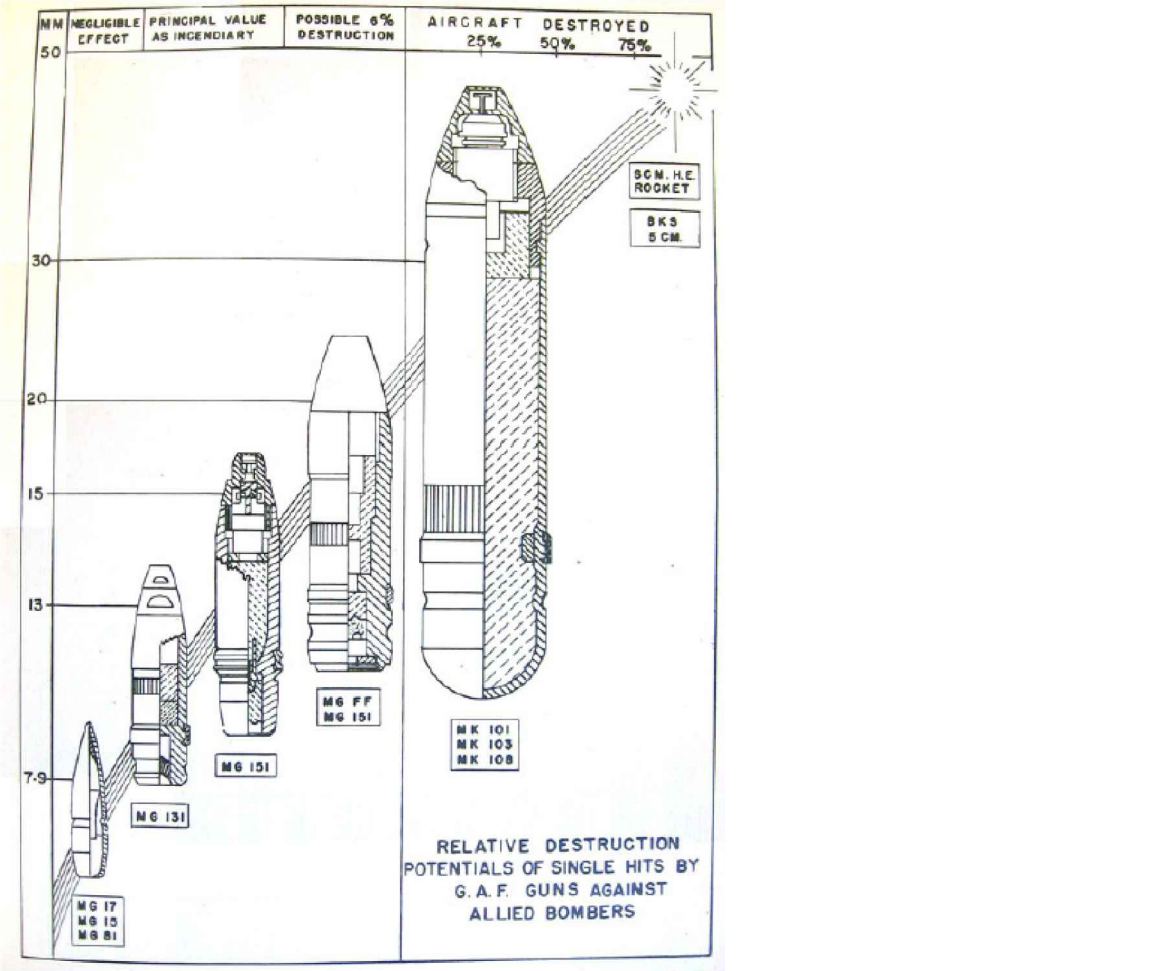 Gunsmith86 Posted December 21, 2015 Posted December 21, 2015 Mh Laut dem Buch holt Hartmann vom himmel war das aber nicht der Fall nicht umsonst war die Il2 auch Fliegender Panzer genannt. Wenn du das noch mal genau liest wirst du auch feststellen das er schreibt das angriffe von unten nach oben geführt die IL2 mit nur wenigen schuss von Himmel holt. Und wie 5tuka oben schreibt ist es auch oft glückssache wie man getroffen wird. Wer aber glaubt das dieser Vogel unzählige 20mm Granaten einfach einstecken kann der irrt sich gewaltig wenn so einer manchmal 10-12 treffer wegstecken kann dann muss man das im vergleich mit anderen Maschinen dieser größe schon als sehr gut ansehen. Für einen Jäger brauchte es im höchstfall immerhin bloß 5 treffer dieses Kalibers! Eine 37mm Flakgranate ist meines wissens nach fast immer mit dem ersten oder zweiten treffer tötlich für ein Flugzeug. Ab und zu gibts natürlich ausnahmen bei denen eine Einzelne Maschine so glücklich getroffen wird das sie eine wesentlich schwerere Granate z.B: 8,8 cm Flak einsteckt und trotzdem noch die Besatzung mehr oder weniger heil runter bringt, sind aber eben meist nur Ausnahmen. Bleibt noch eine Frage hat die IL2 ihre verschiedenen Spitznahmen verdient oder nicht? Die Antwort ist wohl ja das hat sie, den für den gewöhnlichen Infanteristen war sie nicht zu bekämpfen. MG feuer konnte ihr nahezu nichts anhaben und das war nunmal das einzige mittel das der Infanterie immer zur Verfügung stand. Dazu vieleicht noch ein Grafik die von den Amerikanern nach dem Krieg erstellt wurde. Untersucht wurde wie viel Schaden ein einzelnes Geschoss an einer B17 anrichtet das ganze ist in Prozentzahlen umgerechnet wobei 100% für die totalle vernichtung steht.