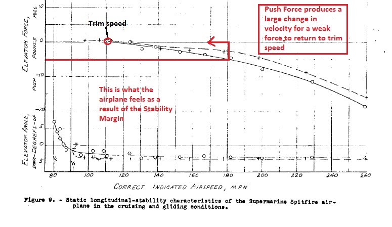 Crump Posted July 15, 2016 Posted July 15, 2016 The Bf-109 is famous for its stability. It was a departure from previous and wrong thinking of most fighter designers in World War II. Most fighters were airplanes that weapons were stuck on almost as a afterthought. Willy Messerschmitt designed a gun platform and put wings on it. You can see that if you know how to read stability plots. The Spitfire Mk V at 31.4% MAC (Normal CG position) had very weak almost neutral stability. You can see the slope of the curve is almost zero. 13GIAP_opcode, on 03 Jul 2016 - 21:46, said: Perhaps modern fighters with computer control would meet this definition, but not warbirds. In order to be controllable without modern avionics, an aircraft has to meet the conditions for positive static stability. Some aircraft had stability issues (e.g. spitfires with aftward CG shifts) but the designers always sought to correct them. Yes