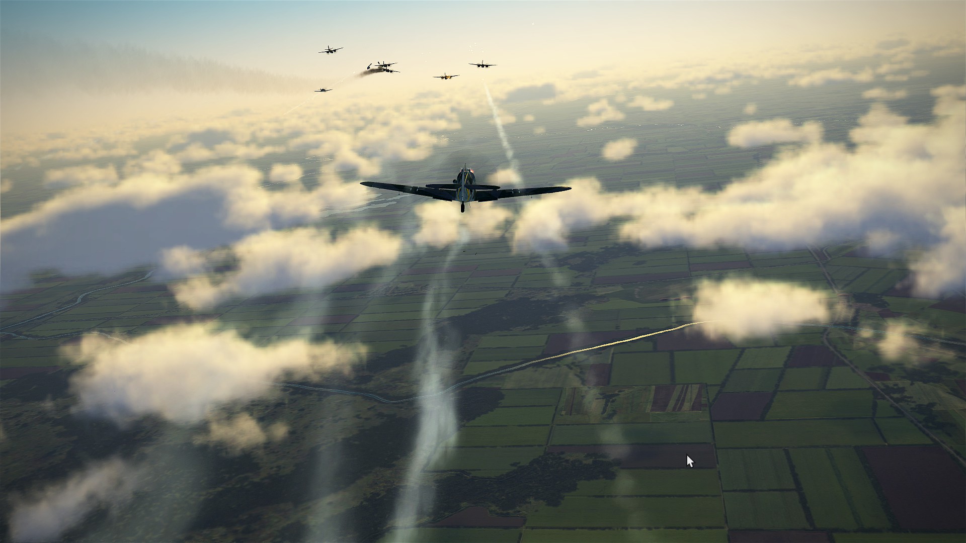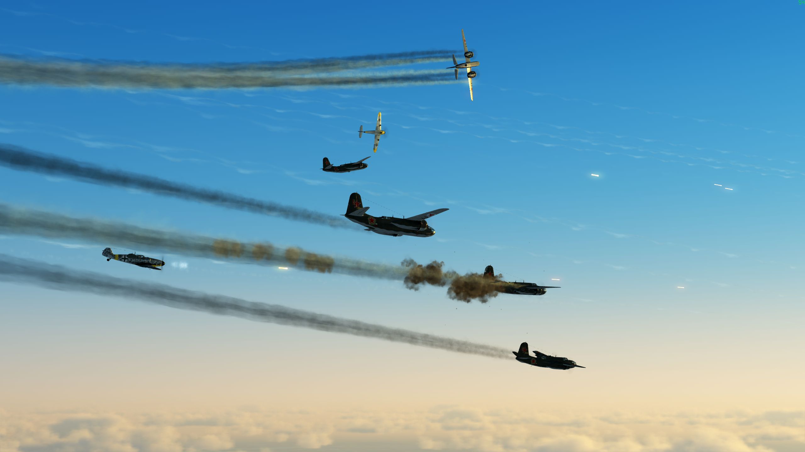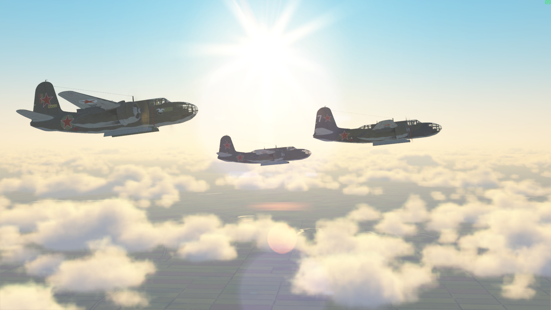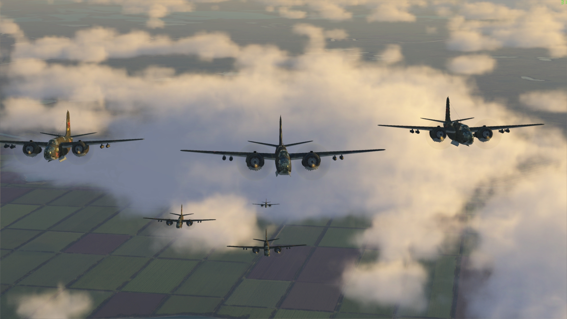 56RAF_Pod Posted March 31, 2018 Posted March 31, 2018 (edited) This was my first mission as a bomber pilot. During the take off of the first sortie I was promised sweaty palms and a sore butt and sure I got both. First sortie [DBS]T}{OR led us to the target in two flight of three and since it was quite a long flight I had time enough to practice formation flight. I needed that. Over the target the formation was still quite tight (at least for me) and we dropped the bombs on T}{OR's call. It was a great feeling to drop them so close to each other. We turned home. But before long we met some 109s with the above result. Unfortunately Marta got killed, so we only had 5 pilots left. I parachuted out of my A20 looking back and saw a scene more appropriate for an airborne landing than a bomber run.... parachutes everywhere. Second sortie we went in one flight and again I had to concentrate very hard to stay in formation. It was decided to drop bombs on the same target and again we dropped them in close formation. This time the 109s were not there, so we all returned home safely. Even the landing was very coordinated. Thanks DBS and Cathaoir for helping me learn how to fly the A20 in formation! Edited March 31, 2018 by 216th_Pod 4 1