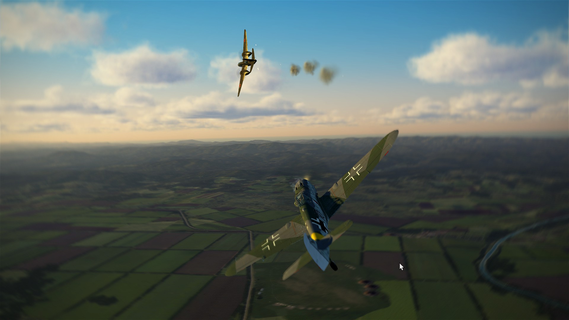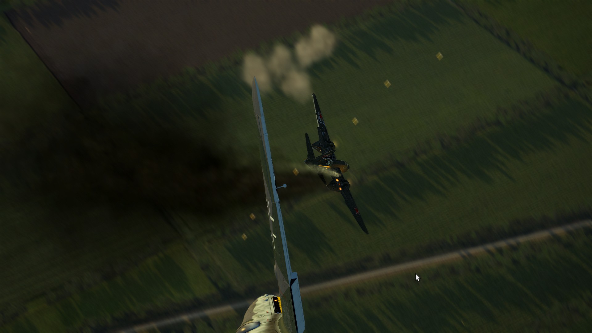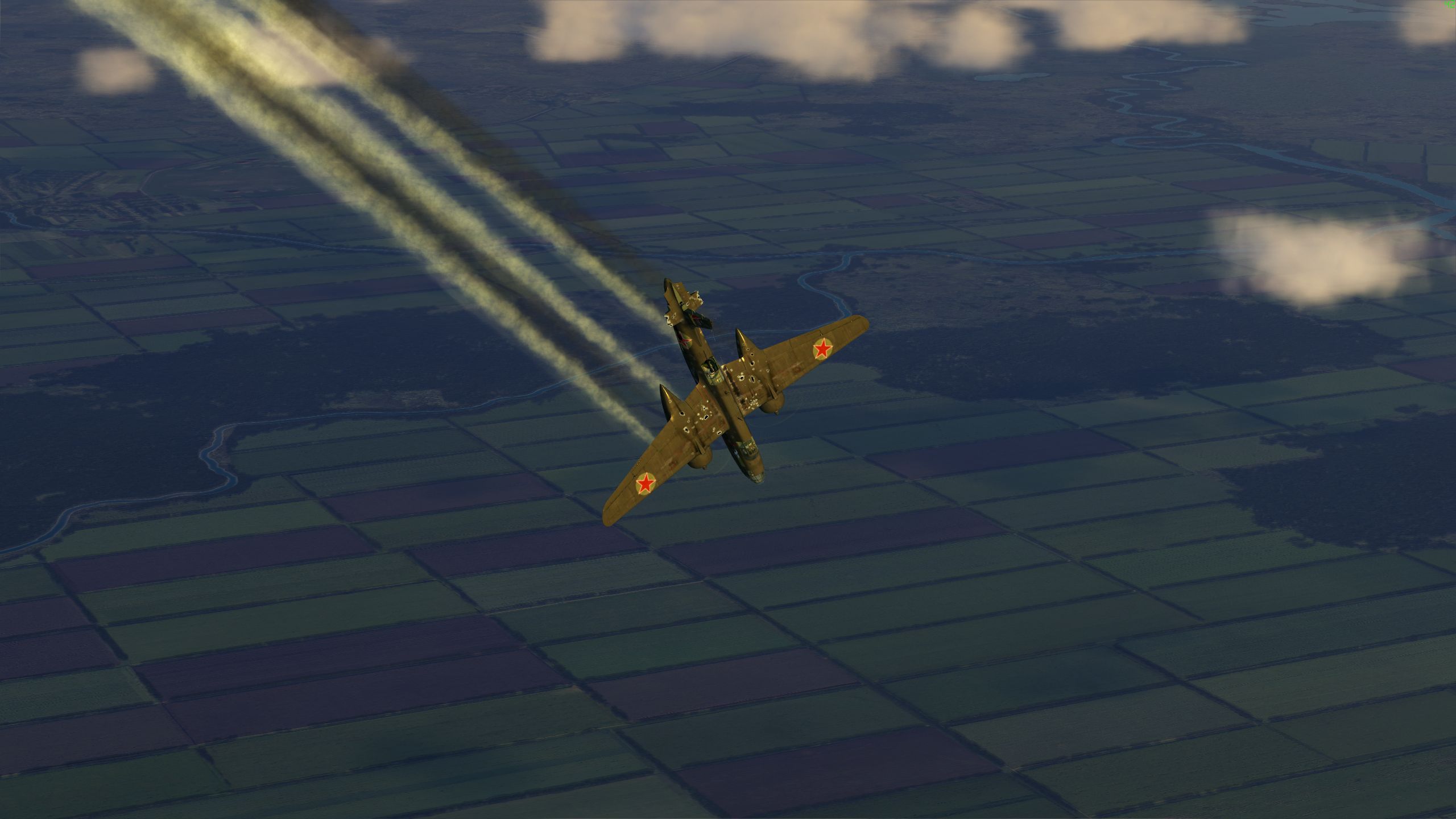 216th_Lucas_From_Hell Posted March 31, 2018 Posted March 31, 2018 Busy evening for the P-39s! Our first mission didn't go to plan - I made a massive error of judgement and put me, my wingman and by association the flight in a bad situation. This mistake was amplified by the low light conditions, and in the end only two of the five P-39s returned to base safely. After being heavily damaged by a Bf-109G-6, I thought it was the end for me but my trusty #5 did the impossible and maintained level flight despite only having working rudder controls! I bailed out safely over friendly territory thanks to that, and into the briefing room we went. The second mission was tense but uneventful. Besides the sighting of a mysterious pair of light aircraft diving through a cloud in the distance, we had no interactions with enemy aircraft, and after 40 minutes of flying our Cobras were delivered at Krasnodar without fanfare. The only action seen during this mission wasn't related to us - while overflying Severskaya, I glanced down to see a pair of Normandie-Niemen fighters and an Il-2 over the airfield. The cannons of the Ilyushin opened up, explosions were seen at the enemy positions, and everything was looking good. Sadly, only moments later we saw how anti-aircraft fire caught up to the attacker and set it on fire. The smoking Il-2 tumbled over to one side, and engraved itself forever into the Russian steppe. The radio transmission from NN confirmed the ordeal - "Eskimo is down, Eskimo is down." As we found out later, this sacrifice was not in vain thanks to Cat's effort to finish what Eskimo had started. The third and last mission took me, Nocke and Jizzo across the map. While priming a drop zone for incoming bombers, 1.JaVA's strike group reported they had encountered a formation of He-111s complete with fighter escort heading towards our lines. This was 40km away, and initially we decided to stick to our main mission. Minutes later, the same group was reported again, this time 35km away. After evaluating the situation, we figured we could meet the bad guys over the target, and plotted an intercept course accordingly. Lo and behold, shortly after we reached our estimated point the formation was spotted at close range! With little time to react, I naïvely swerved my #5 towards it, and ended up right in the middle of the formation. The defensive fire rattled my aircraft, my ears started ringing and my vision blurry, with a big He-111 right ahead of me. I pulled the trigger and gave it what I had, even if my engine at this point had quit on me. I spent all my 37mm ammunition before my aircraft started begging for some thicker air - dead-stick at 6000m is not exactly a piece of cake. On the way down I assessed the damage, only to find one horizontal stabiliser had been ripped off, the elevator trim had stopped working, the rudder was working funny and the aircraft was rocking from side to side whenever I pressed either pedals. Nonetheless, it bravely glided all the way down, and was caught in a treeline after I underestimated my speed while aiming for a clearing. Alive, if shaken, I rode the ambulance back to the division's headquarters... 5 2