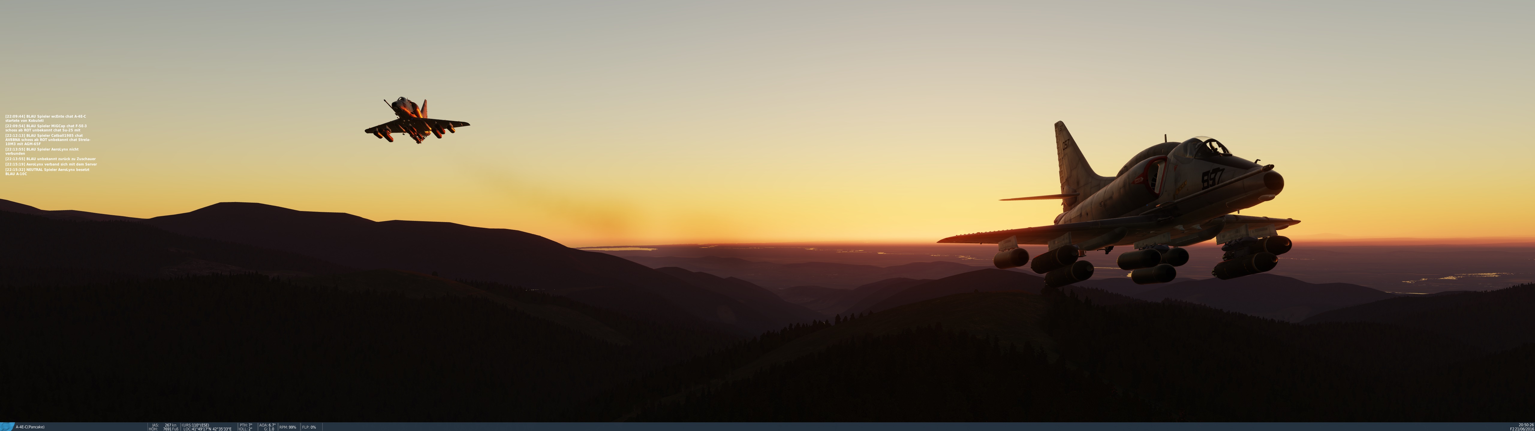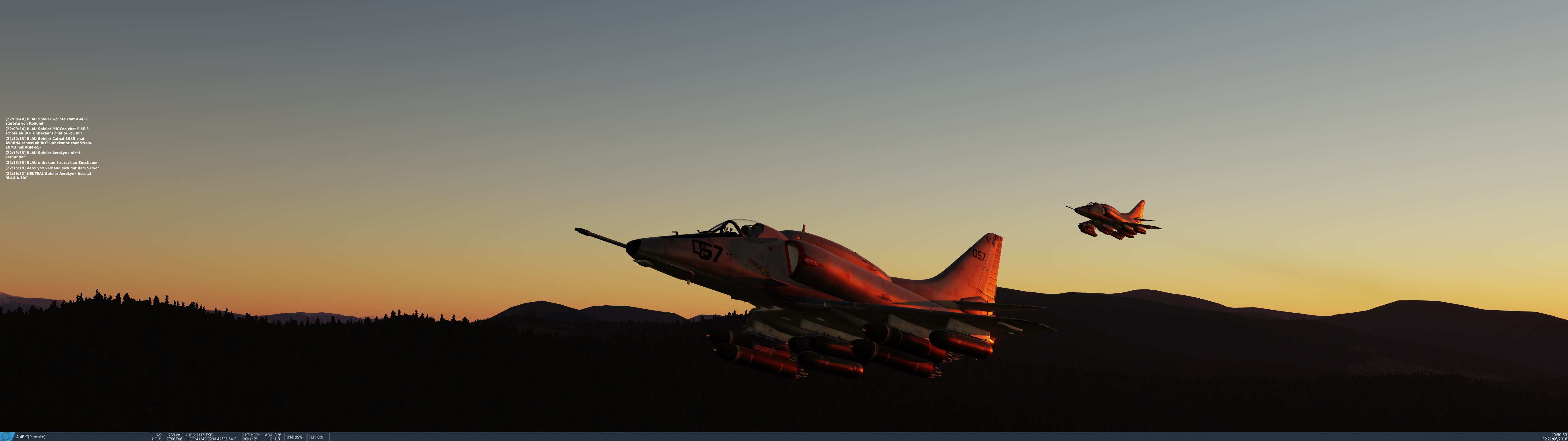Dierk3er Posted February 13, 2021 Posted February 13, 2021 (edited) Zum Einstimmen mit Bröms und Pancake auf dem Vietnam-Server A-4 fliegen. Während Pancake Hernrn Bröms die Feinheiten des Trägerstarten verrät... ...hier beide am Katapult... ...und kurz danach in der Luft... ...muss ich mich noch mit der externen Elektrik rumschlagen. ? Kommt es mir nur so vor, oder schwebt das Dingen in der Luft? ? Anschließend dann auf den Server von Martin: Das Katzenbällchen wird verhaftet. ? Und kurz darauf abgeschossen. Angriff auf einen Zug im Bahnhof. Die A-4 kann ein ordentliches Load-Out mitnehmen. ? ...was auch mächtig Rabatz veranstaltet. Wohingegen meine bescheidene Zuladung von Mk82 Snakeeye, Mk83 und Mk84 an meiner Hornet lediglich punktuellen Schaden verursachte: Während wir im Groundattack waren, versuchte sich Miggl im engen Tänzchen mit 2 SU-25T.... Nachdem seine beiden Sidewinder verschossen waren, ging es mit der Bordkanone weiter. Und dann wurde es langsam Dunkel auf dem Server... Bröms und Pancake mit A-4 im Tiefflug auf dem Weg zu einem Terroristencamp. Meine Wenigkeit in der Hornet hinterher. Stimmungsvolle Bilder. Und auch hier hat es ordentlich BOOM gemacht. Ein paar Bömbchen für die pöhse Tunguska... ...hat leider nicht funktioniert, und sie hat mich abgeschossen. Bäh! Währned Catball mit dem Harrier noch ein nächtliches Betankungsmanöver durchgeführt hat. Respekt! Als dann noch Heiko dazu kam und wir den Server neustarten wollten (für mehr Tagesslicht. ? ), nutzte ich die Gelegnheit noch vorher mit der Mig-21 eine Atombombe am Platz abzuwerfen und so ziemlich alle in Reichweite zu verdampfen. ? Em Ende haben wir dann nur noch ein paar Starts und Landungen probiert. Ich hab noch den Träger bombardiert, woraufhin die Bodencrew die Arbeit eingestellt hat und wir somit nicht mehr vom Carrier starten konnten. Blöd. ? (Aktennotiz für mich für die Zukunft machen. :mh: ) Brömsi ist trotz Loch auf dem Deck mit seiner A-4 noch hier gelandet. Nur um etwas später vom Deck zu fallen. ? War insgesamt ein lustiger Abend und ein paar vergnügliche Stunden. Ich hoffe, wir gehen heute Abend nochmals in die Luft. ? Edited February 13, 2021 by Dierk3er 1 1