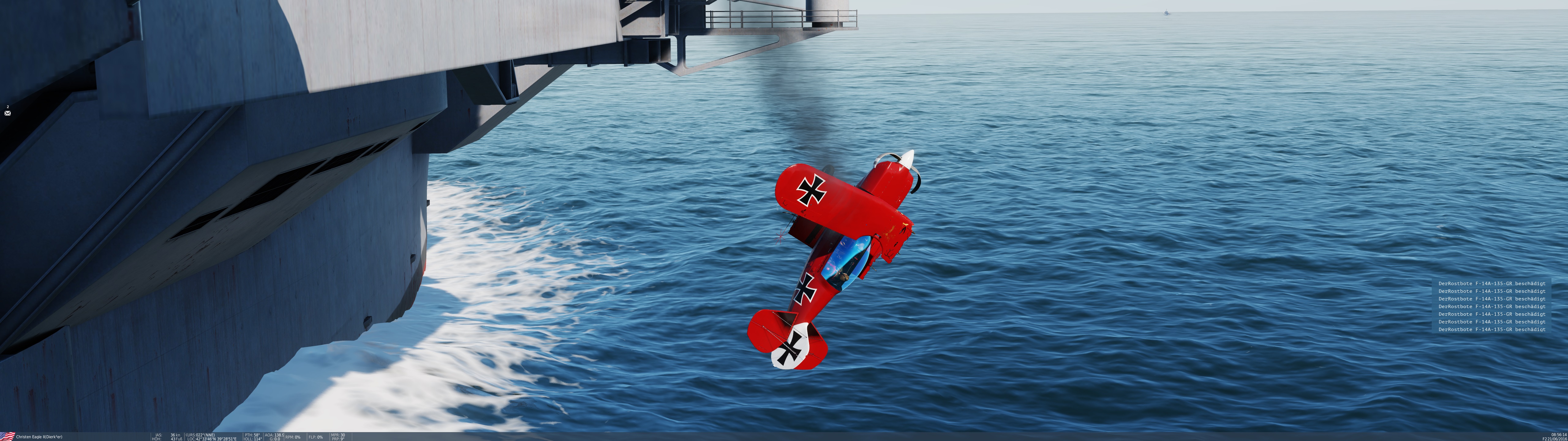 Dierk3er Posted February 16, 2021 Posted February 16, 2021 (edited) Dank Brömsi mussten wir von der Strasse aus starten. ? Wahrscheinlich noch zuviel Landegebühr nicht bezahlt. ...und Brems hinterher... Anschließend erste Versuche mit der AGM-84 D & E Harpoon. ...könnte noch besser werden. Während dessen musste Robin seinen Lada neben dem Zelt parken und mit der Mig-21 durch die Stadt rollen. Kurzer Halt auf der Brücke um ein paar Fische zu angeln. Anschließend der Start von der Strasse. Formationsflug mit Brems. Ich mag den Jolly Rogers Skin. :mh: Meine Hornet als Lead, Bröms an der rechten Tragfläche. Versuche mit der Maverick auf Schiffe zu schiessen, waren leider aus unerfindlichen Gründen nicht von Erfolg gekrönt. Also wieder zurück zum Träger... ...und Touch down. Mister Bremspropeller gleich hinter her. Versuche mit Mk82 SnakeEye waren erfolgreicher. ? Man beachte die Bodentexturen. Sah eine Zeitlang überall auf der Map für mich so aus. Da half nur ein Neustart. Es wurde wieder Abend/Nacht. Hier Robin in seiner Mig-21. Wollte ein bisschen die Schiffe ärgern. Die Zerstörer haben ihn aber gar nicht bis zum Träger kommen lassen. ? Ebenfalls sehr unterhaltsam: Brems bei seinen alltäglichen Versuchen in der Luft nach zu tanken. Was ihm ja sonst immer gut zu gelingen schien, entpuppte sich vorgestern Abend als unlösbare Aufgabe. ? Dafür war die Fluchorgie im Funk sehr unterhaltsam. ? Zunächst wollte ich noch ne Runde Bömbchen mit der F-16 werfen. Geht ab wie ein Zäpfchen. Trotz schwerem LoadOut. Robin in seiner Mig war zwischenzeitlich auf dem Rückweg vom Träger. Also Zeit sich seiner Anzunehmen. :mh: Leider hat die doofe F-16 soviel Sprit im Nachbrenner verbraten, dass ich Robin nicht mehr gefährlich werden konnte. Hab ihm noch ein paar Amraams und Sidewinder hinterher geschickt, jedoch ohne Erfolg. Irgendwann ist mir dann der Sprit ausgegangen und ich bin ausgestiegen. Auch Stefan in seiner F-5 genoss den Sonnenuntergang. Brems in seiner Tomcat.... Nächster Tag: Start mit der Christian Eagle in Batumi, mit Kurs auf den Träger vor der Küste. ...gefühlte Stunden später dann die Ankunft. Dort durfte ich dann die ersten Landeversuche von Heiko in der F-18 begleiten. Bis ich mich dann kurzfristig dazwischen quetschte... So schlecht war die Landung eigentlich gar nicht. ? Leider stand Bröms mit seiner Tomcat im Weg und ich wurde über Deck gewirbelt. Danach noch ne Runde Tomcat fliegen. Im Hintergrund Rechts mit Jolly Rogers-Outfit unser Miggl. Mitten auf dem Deck und immer im Weg, Mister Bremspropeller. Und unten am Rand meine Wenigkeit. Und zum Abschluß noch ne sinnfreie Runde in der Hornet über den Träger und fliegerische Unzucht betrieben. ? Hier übrigens mal Thomas mit seiner F-14 aus meiner Cockpitsicht beim Landen... Drittes Kabel....passt. ? Edited February 16, 2021 by Dierk3er 3