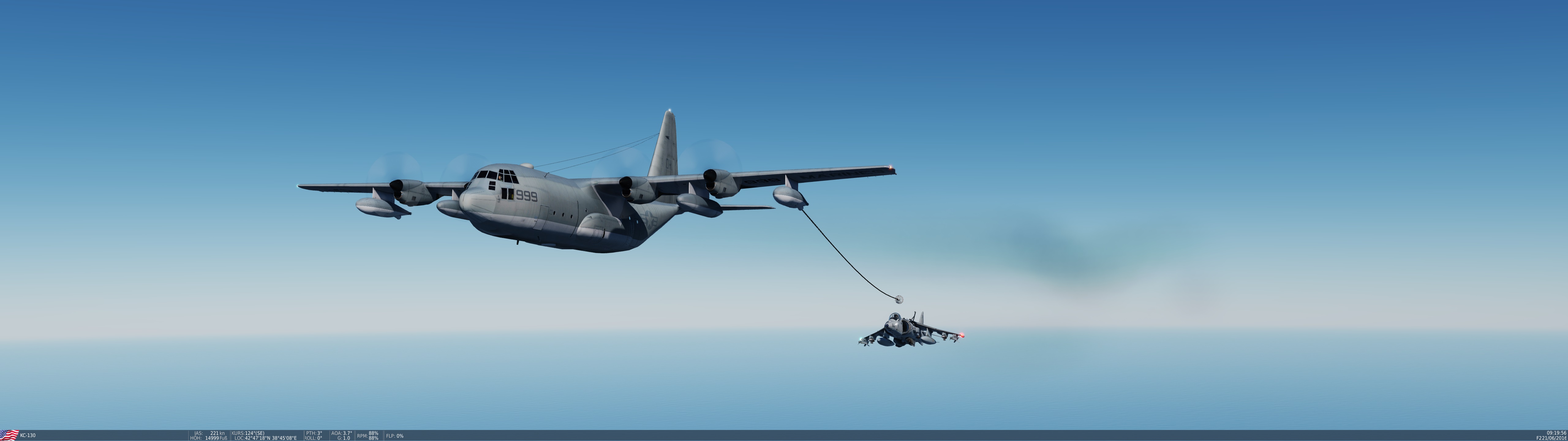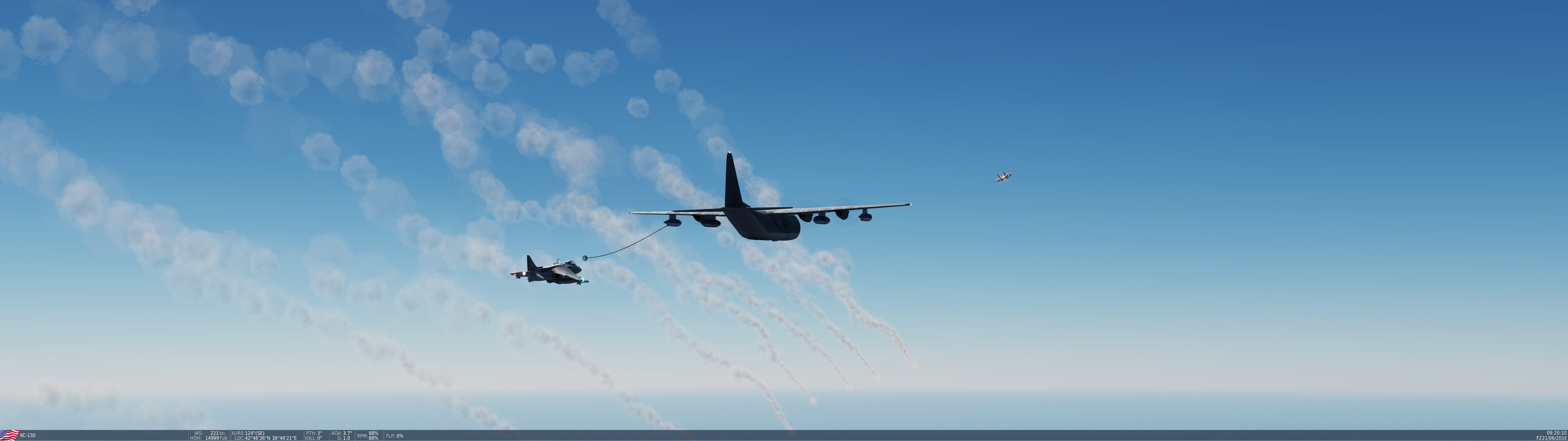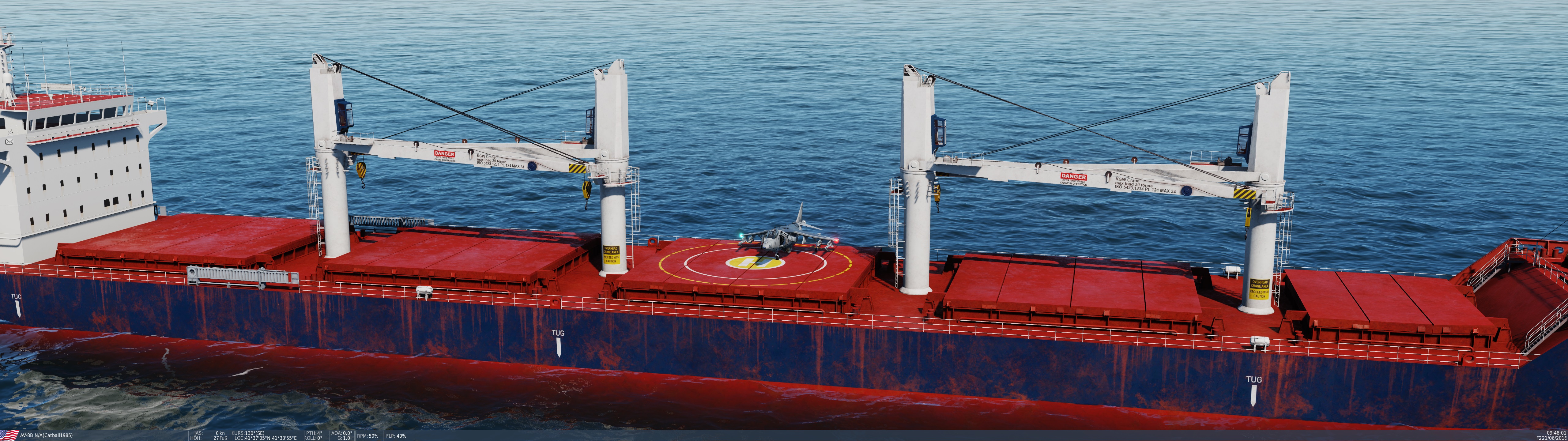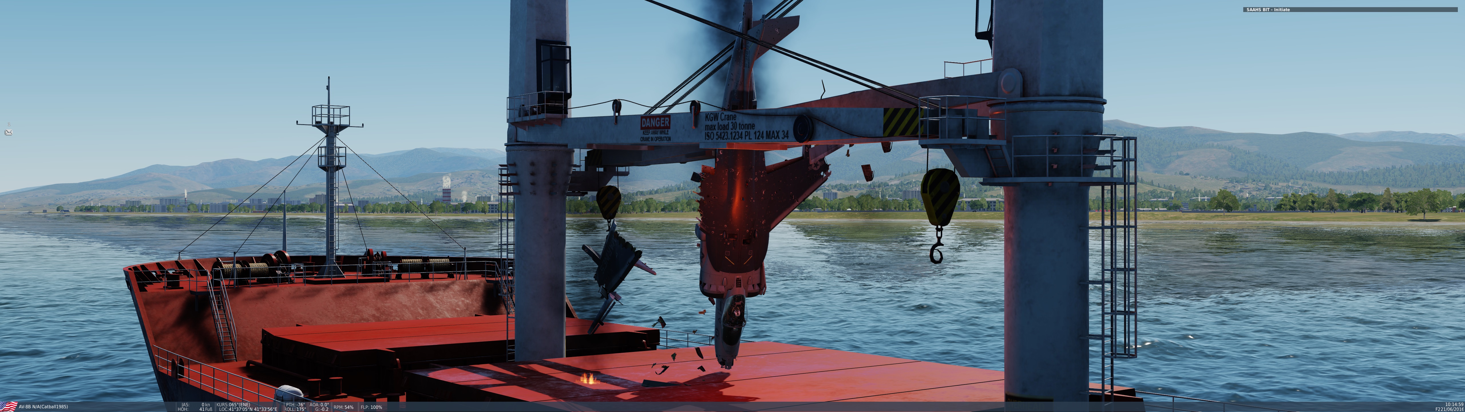 Dierk3er Posted March 7, 2021 Posted March 7, 2021 Stefan beim Takeoff mit schwerem Loadout. Wurde am Ende etwas knapp mit der Runway. ? ...und hier, nachdem Robin seine Raketen auf Stefan abgefeuert hatte. ? Meine Wenigkeit wollte mal das neue Schiff in DCS mit Laser-Guided Bömbchen versenken. Unten links neben den Bohrinseln vor der Küste schwimmt der Pott. Da issa.... Während dessen musste Catball in seinem Harrier natürlich noch darauf landen. Nachdem das geklappt hatte, erschwerte Bedingungen beim Landen unter dem Kran. ? Da war nicht viel Luft zwischem Kran und Flugzeug. ? Respekt! :bow: Leider hat es dann beim Starten nicht mehr so gut geklappt. ? Martin ist mit dem Seitenruder am Kran hängen geblieben... Bäääm, so ein Feuerball, Junge! ? Fliegerdenkmal mal anders. ? Hier der Versuch von Martin der Luftbetankung. Aus unerfindlichen Gründen hat Catball sich aber aus der Ruhe bringen lassen, und es klappte nicht so recht. Könnte auch an den Flares gelegen haben, mit dem Brems ihn von seiner Tomcat aus eingedeckt hat. ? Nachdem er uns dann im TS auf MUTE gestellt hatte, hat es dann irgendwie geklappt. Brems guckt von hinten dabei zu.... Ich habe mich dann in meiner Hornet noch um die beiden SU-25 gekümmert, die in unserem Luftraum herum stromerten. Hier die Erste.... Nummer zwei im Visier... Und Treffer! Und zum Abschluss noch ein Erinnerungsbild. Meine F-16 startet in Incirlik auf der Syrienmap, die mir DCS später zerschossen hat. 2