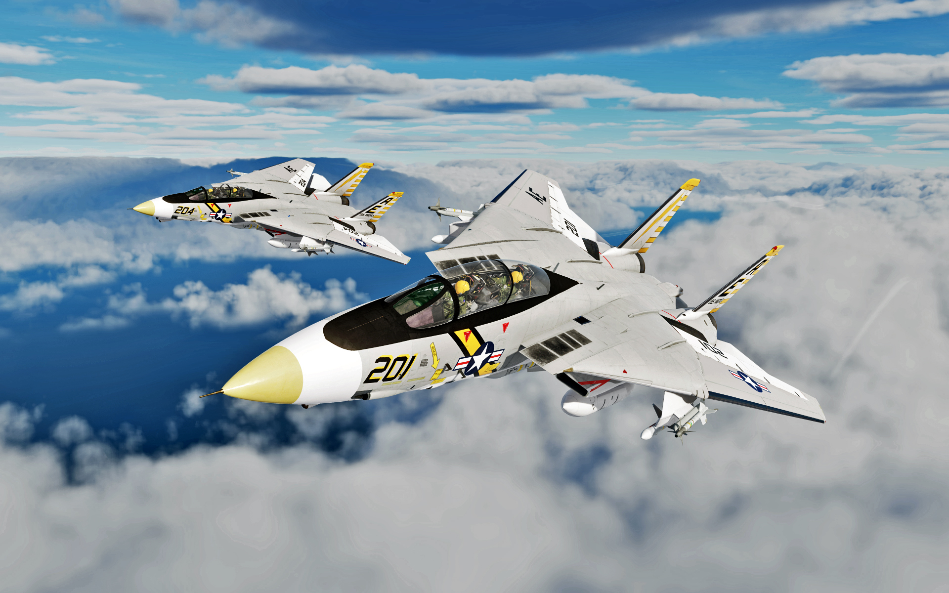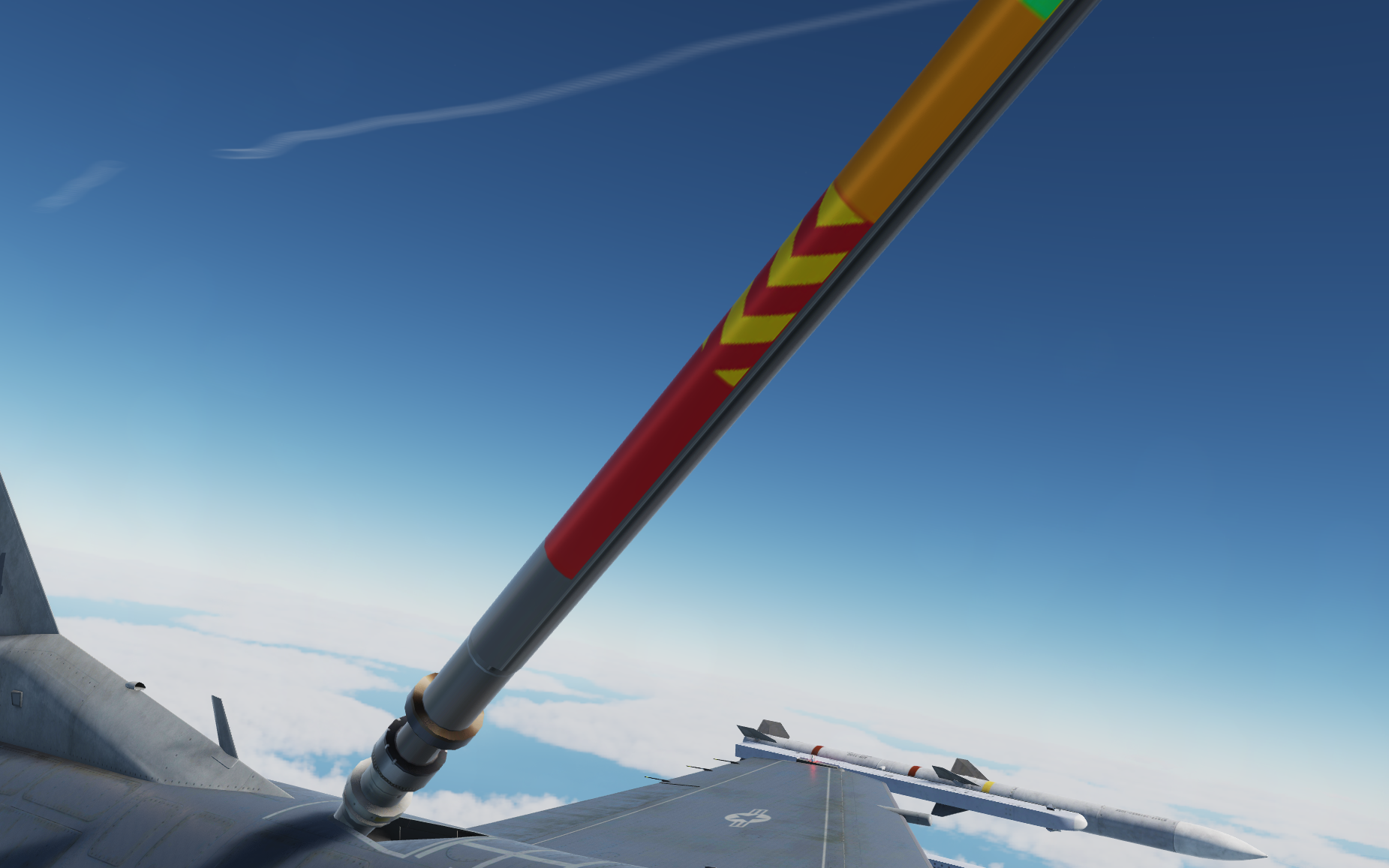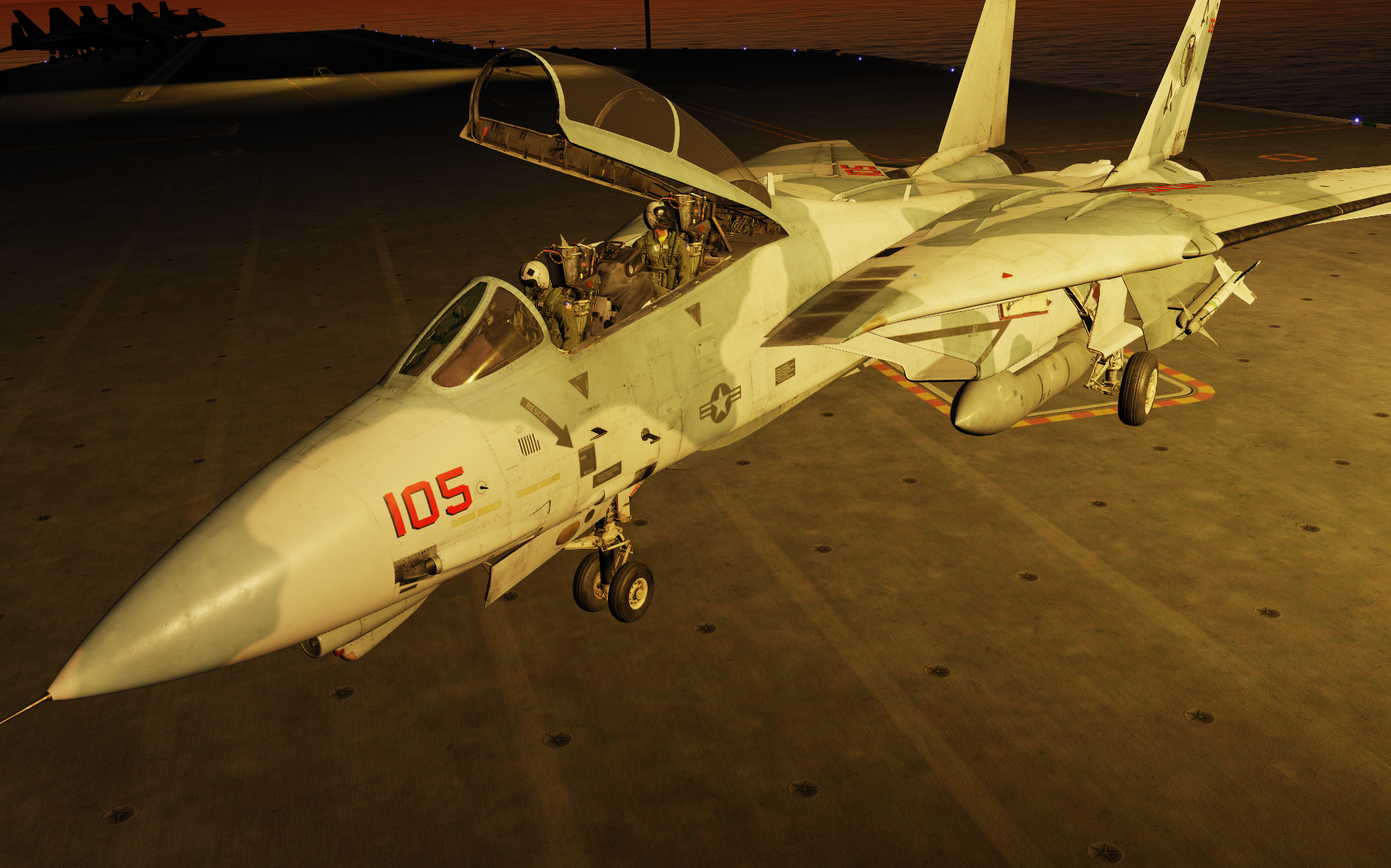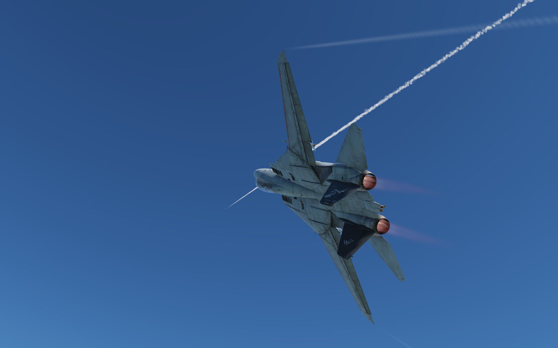 Bremspropeller Posted May 13, 2021 Posted May 13, 2021 Robin fliegt mit Labels Skyhawk auf der HMAS Melbourne - der kleinste Träger auf dem die Scooter jemals eingesetzt wurde. Hier drauf zu landen ist....scary! Die weiße Linie zeigt die Deck Foul Line für die C-2 Tracker an, die ebenfalls auf dem Träger stationiert waren: Völlig krank ? Mit Müh und Not kommt die Kiste von der Piste weg... Tanz, Ania! Meine kleine Farmer... Der sorgsame Umgang mit dem Steuerknüppel ist angeraten, sobald man Außenlasten mitnimmt... Schon eine halbherzige Rolle montiert den Tank an der sich hebenden Tragfläche ab. Der silberne Skin ist mit Sicherheit der beste silberne Skin in ganz DCS. Kurz befor Robin sich wegen Kraftstoffmangels im Felgabschwung üben musste. Mit Sprit-Beuteln lässt sich in der Höhe eine halbwegs anständige Flugdauer bewerkstelligen. Die beiden K-13A Flugkörper wurden später gewinnbringend in dine KC-135 investiert... 2