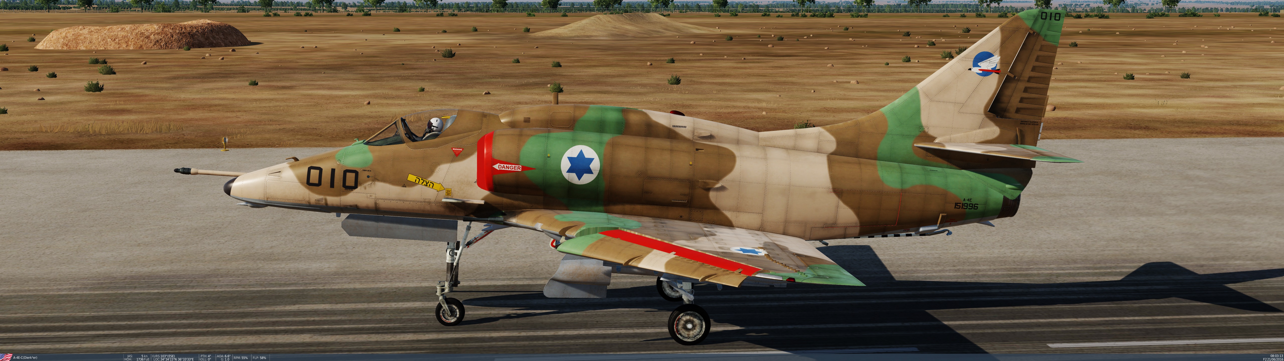 Dierk3er Posted May 14, 2021 Posted May 14, 2021 (edited) Der heutige Abend stand ganz unter dem Eindruck der aktuellen Ereignisse im Nahen Osten. Brömsi, Pancake und ich setzen uns somit in israelische A-4s um der Hamas eins aufs Dach zu geben. In Formation ging es im Tiefflug ins Feindgebiet. Feindliche Kräfte wurden auf dem Weg über die südliche Grenze in den Gazastreifen gesichtet. Trotz Beschuss wurden die Fahrzeuge mit Streubomben angegriffen. Edited May 15, 2021 by Dierk3er 3