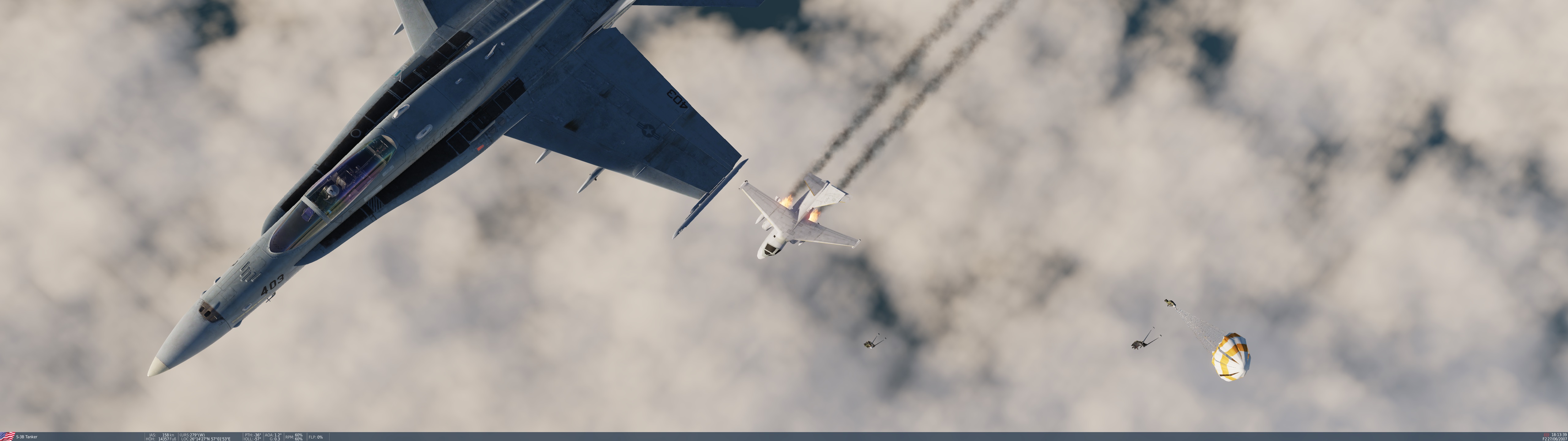 Dierk3er Posted October 9, 2022 Posted October 9, 2022 (edited) Vorgestern mal mit dem Thema "Luftbetankung" in der Hornet beschäftigt. Doch jedesmal wenn ich nah dran und in Formation war, hat er mich über Funk zurück zum Pre-Contact gerufen. Als es dann doch mal geklappt hat, fing er auf einmal an, in eine Kurve zu drehen. :bag: ...bis mir dann irgendwann der Geduldsfaden riss. Zum Glück hatte ich ja noch nen Zusatztank drunter. Edited October 9, 2022 by Dierk3er 2 1