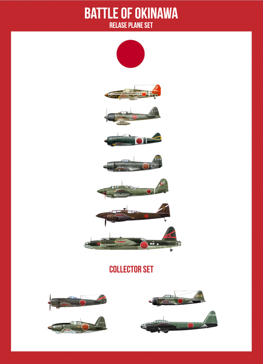 SOLIDKREATE Posted September 16, 2016 Posted September 16, 2016 (edited) The A6M5 is the MOD 52 cannon variant (A5M5c MOD52). The Hein is the Ki-61 KAIc. The A6M in the Collector set is the A6M7 Kamakazi variant for the Seafires to fight off. Enjoy! DOWNLOAD: Edited September 16, 2016 by II./ZG1=SPEKTRE76