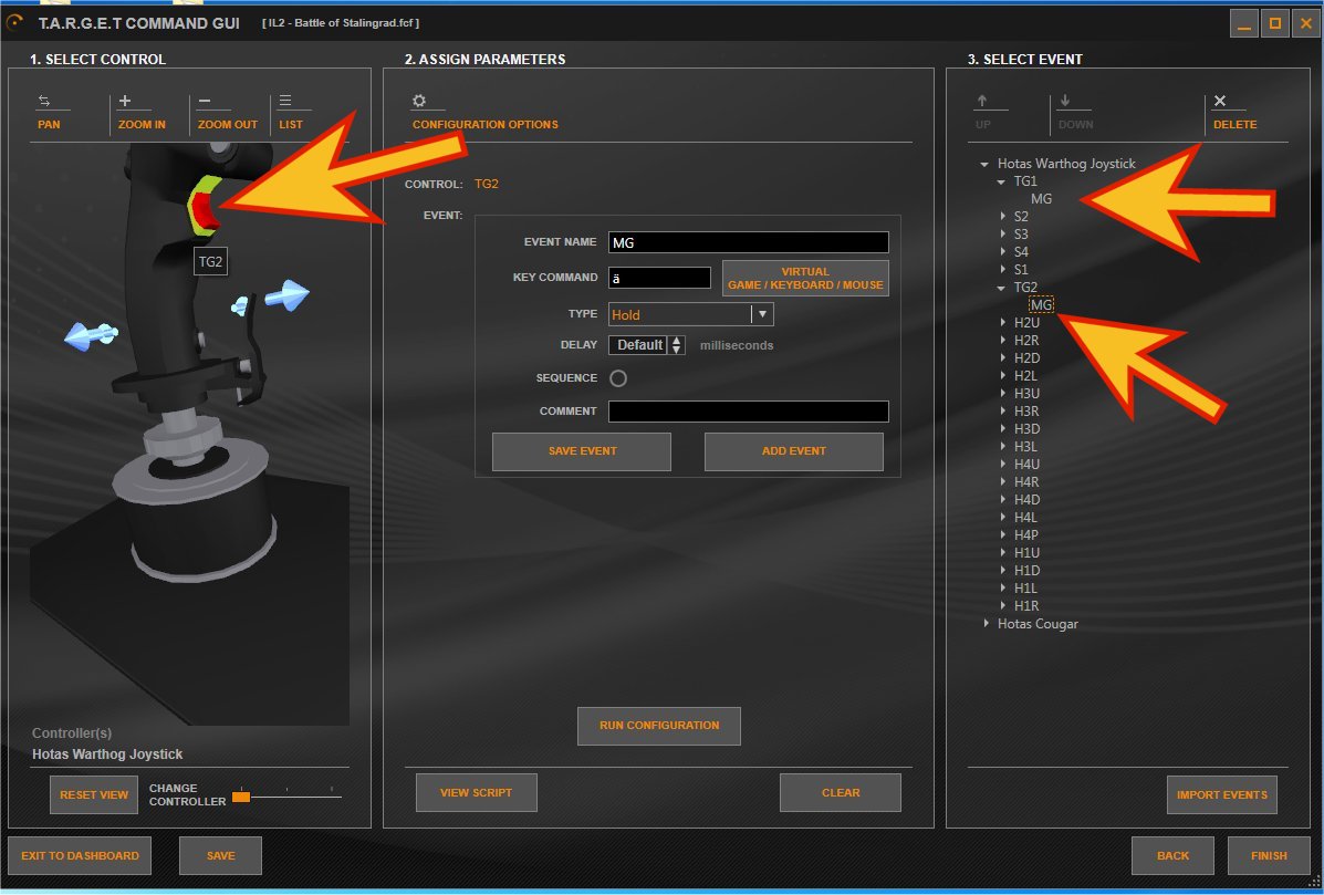simpit1 Posted April 18, 2018 Posted April 18, 2018 Problem solved: The reason is your 2-step-trigger of the flight-stick, i.e. basically the Hotas Cougar/Warthog. Mostly only the 1. step is configured with the key command for firing the cannon. If on step 2 is no command the default joystick-button is configured. This step 2 is responsible for the zoom-in-effect. So the effect only appears if you fully depress the trigger. Solution: Put also a key-command on step 2 for cannon-firing: see attached jpg Result: No zoom-in-effect any more! 1