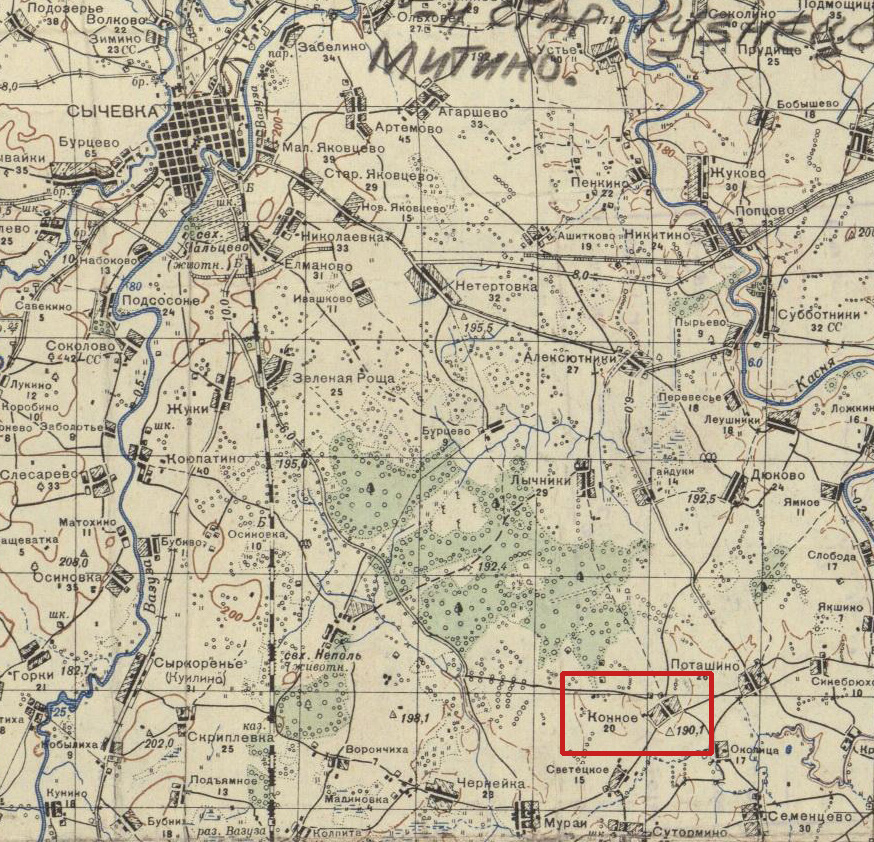 1CGS BlackSix Posted October 11, 2016 1CGS Posted October 11, 2016 Thank you, Costa. Your little pic has also revealed the location of this ominous "Konaja" airfield - it's Sychevka. I will amend the post for II.(Schlacht)/LG 2 and the one I made for 15.(span)/JG 27 according to your detailed list. I found for you "Konaja" on Russian map. It's a village or settlement southeast Sychevka - "Конное" - "Konnoje" But we made an airfield in the another place... 2