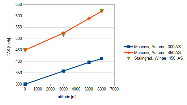 Nocke Posted October 24, 2016 Posted October 24, 2016 Made some quick measurements of TAS in BoM and BoS for 300 and 450km/h IAS at 3000, 5000, and 6000m. Made linear fits for them, fitted the slopes as a linear function of IAS, from these I created a table of TAS as a function of height and IAS (attached). I was missing something like this for navigation purposes. I did it for myself, it could of course be prettier and more exact. And it would certainly be better if someone could come up with the formulae actually beeing used in the sim... I dont feel currently like putting too much work into this, but perhaps some of you may find it useful? I also did that because the values of TAS I measured in this sim do not agree with the elder table I found somewhere for CLOD, and they also do not agree with values I got from some E6B emulator ... And I sincerely hope something like this is not already floating around somewhere on the forum? At least I could not find it ... ... and even more sincerely I hope I did not mess up numbers at some point Cheers! Nocke 1