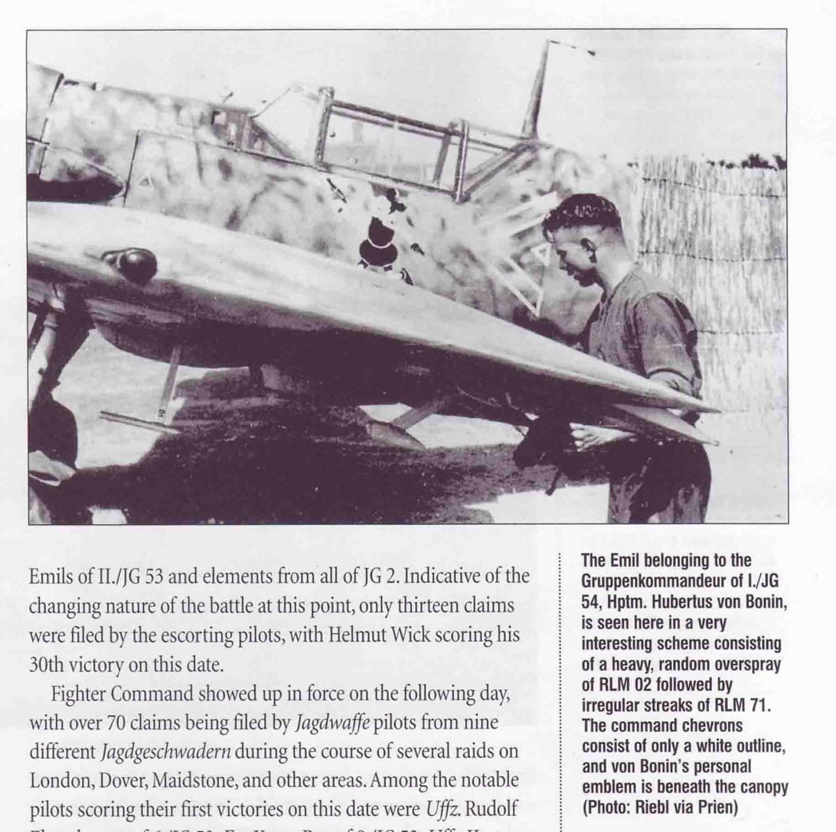 707shap_Srbin Posted August 26, 2017 Posted August 26, 2017 (edited) So was it expanded to anything larger than a Schwarm? No. But as You may know, during Battle of Britain, each Gruppe of each Jagdgeschwader had to have one Staffel converted to JaBo Staffel. In I./JG54 it was 1st Staffel. 1./JG54 used Bf109E-4/B and later a Bf109F-2/B, and relinguished JaBo duties only in spring 1942. Bf109E-4/B of I./JG54, early 1941. Here is "White 1" of Reinhard Seiler, StaKa of 1./JG54. Also, here are emblem of 1./JG54 during early stages of war. Edited August 26, 2017 by I./ZG1_Panzerbar