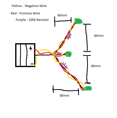 @bean Cool thing, how did you come up with the resistance of the resistor, I´m a bit confused because with a battery voltage of seemingly 4,5V combined and a 100k resistor on the LED, they get only 45 micro Ampere each?