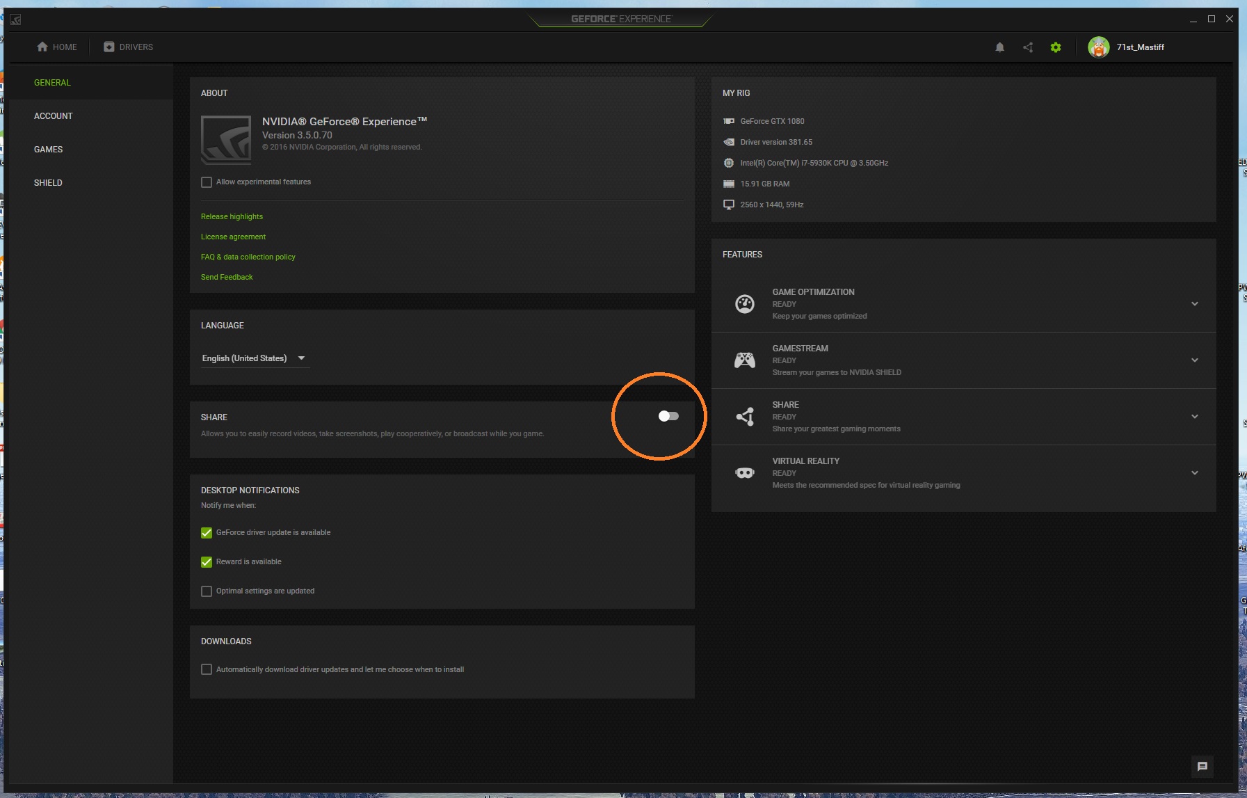 Never use Nvidia Experience so cant help you with that I'm afraid.