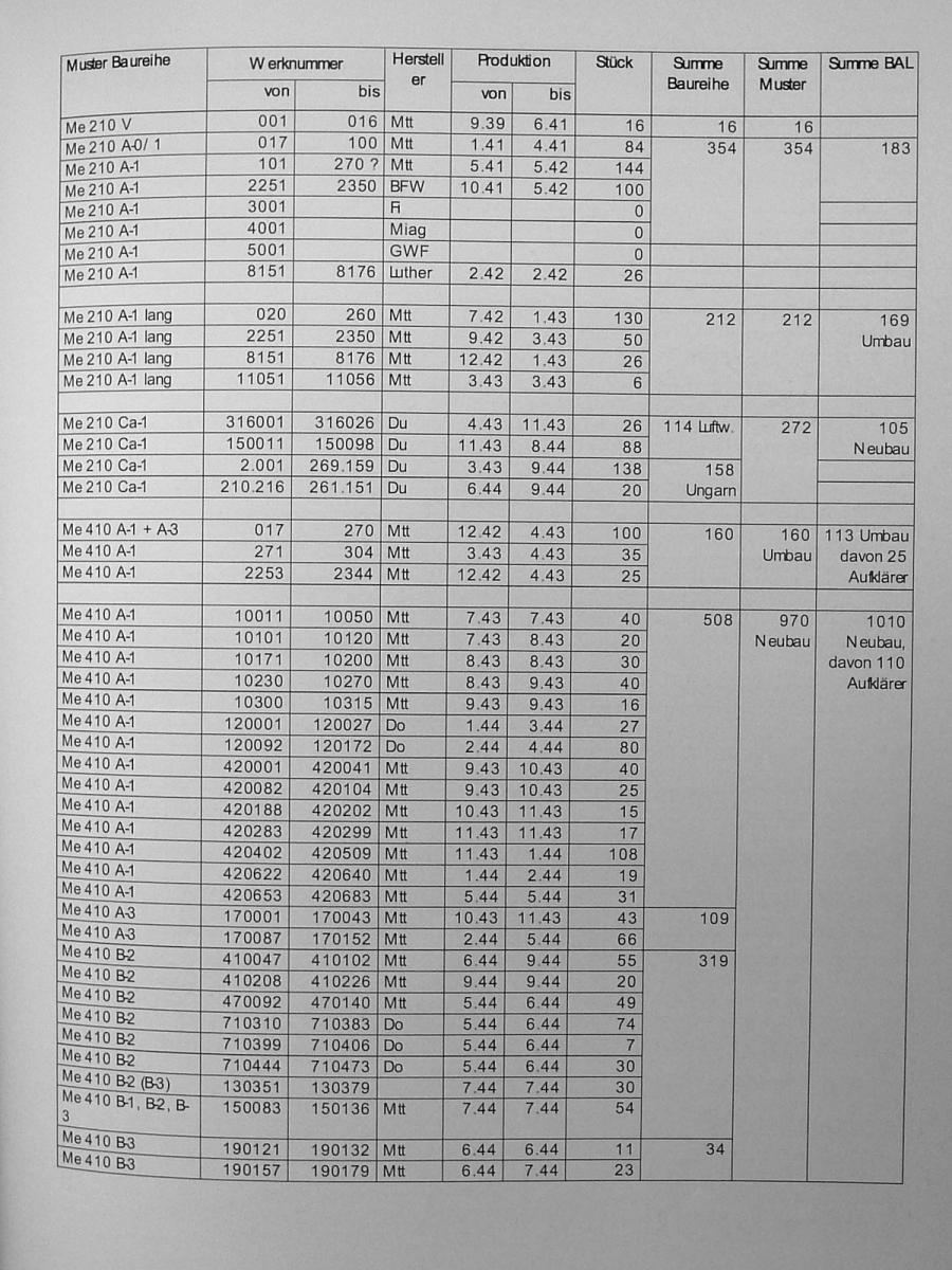 707shap_Srbin Posted May 3, 2017 Posted May 3, 2017 (edited) Production tables for Me210/410 Books, related: Messerschmitt Me 210/Me 410 Hornet Messerschmitt Bf 110/Me 210/Me 410: An Illustrated History And for Me210A in Afrika, look here: Waffen-Arsenal S-43 - Zerstorer Me-210 Entwicklung und Einsatz Petrick's both books are exellent veiw on Me210/410 operations. III./ZG1 was the only ZerstorerGruppe, operated with Me210's, from october 1942 to autumn 1943, when it was reequipped with Me410's and renamed into II./ZG26, under command of greatest zerstorer ace Hptm. Eduard Tratt. Almost all Me410 aces started their war with III./ZG1 in Afrika. Dassow was the most known Here is his aircraft. He flew with Stab III./ZG 1. Another unit, used Me210's, was Erpr.Staffel 210. It flew over England (sic!), doing hit-n-run attacks and recoon flight. For several month in 1942 (sic!) britains could not intercept it even once! First Me210 fell down only to new appeared Typhoon. This is the aircraft wich was shot down. Pilot - W.Maurer, >10 victories veteran of BoB, parachuted into captivity. Edited May 3, 2017 by I./ZG1_Panzerbar
