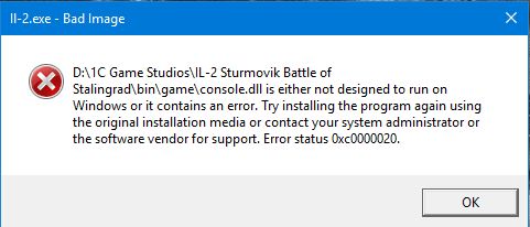 KARAYA1 Posted September 26, 2017 Author Posted September 26, 2017 (edited) Hi, I'm sorry to hear that. Yes I got some support from the IL2-Support team but nothing that helped me. But! I think I have found a way! When I tried to uninstall the game i noticed that there was some files that can´t be deleted? I did everything by the book but still those files was stuck, and every time I installed the game again I got the same problem, and these 3 messengers came and that those files was "damaged" and the error code 0xc0000020: E:\Program Files (x86)\1C Game Studios\IL-Sturmovik Battle of Moscow\bin\game\ CameraMan.dll common.dll console.dll So what I did was to install the game in a entire new folder and it worked!!! But only for 30 min... This did piss me off! But my next solution still works! I kept the "damaged" game installed in the: E:\Program Files (x86)\1C Game Studios\IL-Sturmovik Battle of Moscow and installed an 2nd game in a remote place and I did not try to start it! I left it there but copied the CameraMan.dll, common.dll and console.dll files in to a easy to find folder and then in to the: E:\Program Files (x86)\1C Game Studios\IL-Sturmovik Battle of Moscow\bin\game and replaced the files, now I can fly! If I now get the same error I just copy those files in to the damaged game folder again. Best regards, S Edited September 26, 2017 by KARAYA1