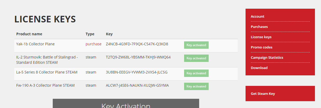 Bommel Posted October 29, 2017 Posted October 29, 2017 Problem solved: Launching the game i see the plane in mij game and have fly it few times now. This was the time i bought a plane directly from Il2, not in Steam. The key is activated at Il2 as you can see. There seems no way to activate it also in Steam. But the plane is very good working in the game, so problem solved i guess. Conclusion: Once bought in Il2 you cannot activate it in Steam, right? If you buy something on steam or a 3rd party site you have to activate your key on https://il2sturmovik.com/ , and if you buy it directly from the devs you don´t have to do anything at all (If you get a steam key later on you can optionally register it on steam, but you don´t have to).