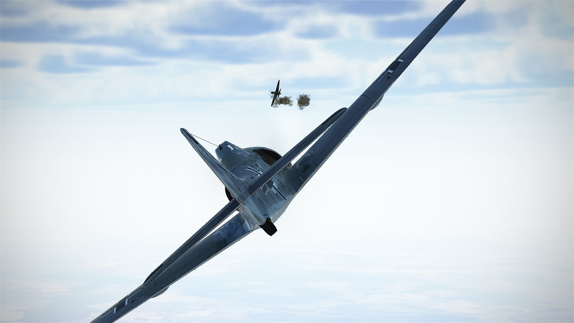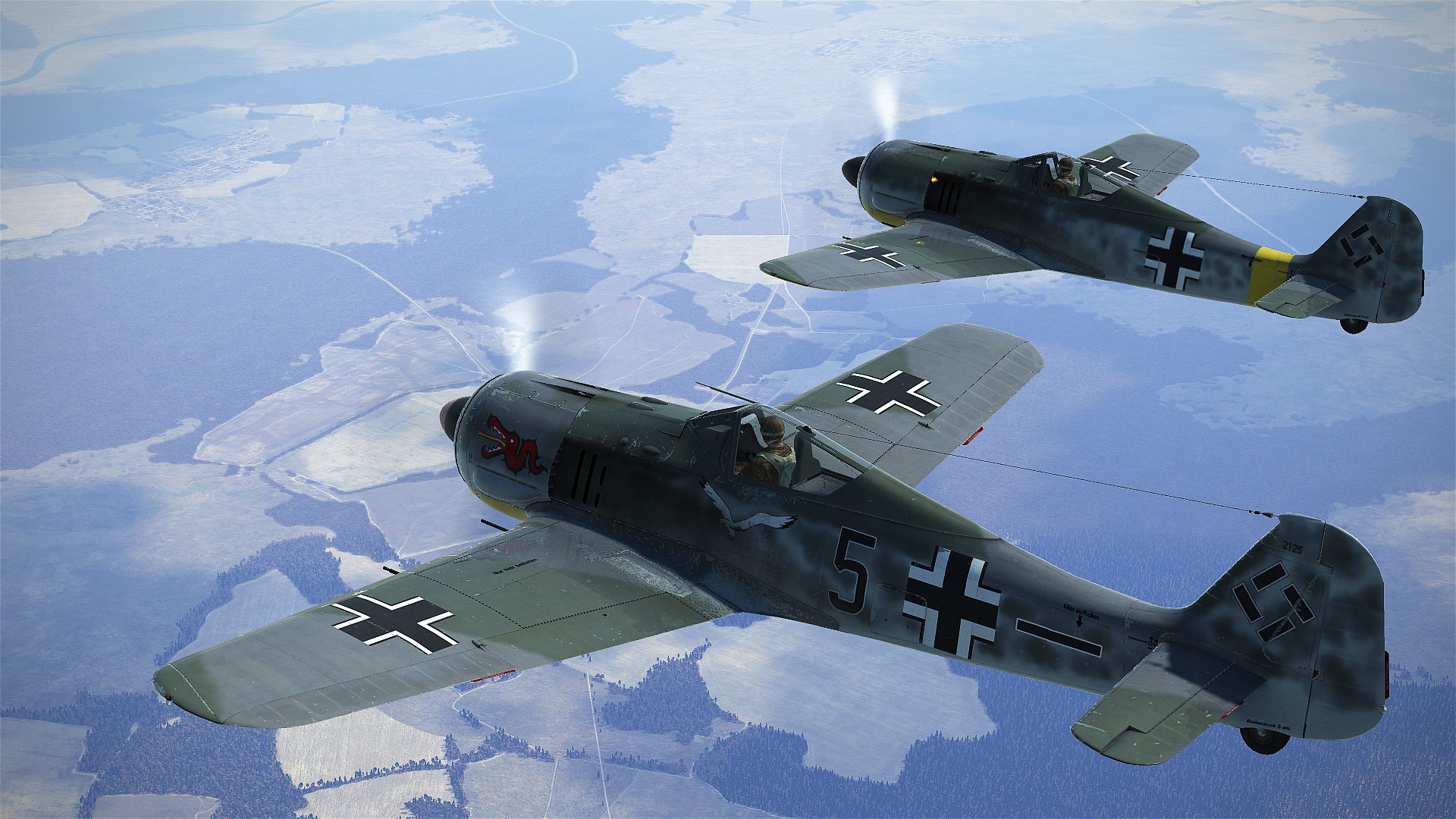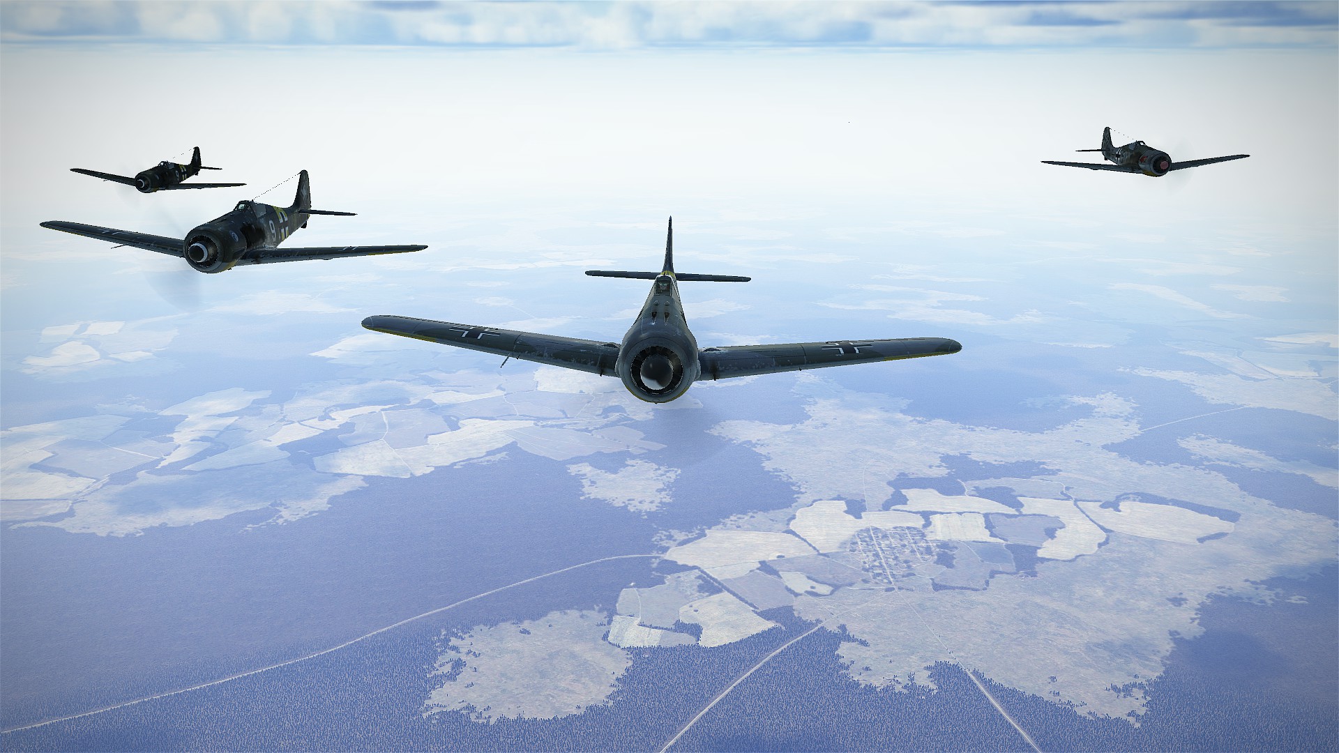 HansBlitz Posted November 11, 2017 Posted November 11, 2017 Cruising along in formation heading out and hoping we don't get bounced while in this tight but we couldn't resist seeing how tight in we could get. The 2nd pic is likely the tightest I've ever tucked in on the lead. A single Yak-1 tries to comes in on our four FW190s from our 9. I wonder if he thought we were so intent on each other while flying close in that we wouldn't see him coming. It didn't end well for the Yak. I spotted him coming in while he was still some distance out and we broke formation. He tried to pass on behind us but we were turing in on him by then. I missed with my first burst at high deflection from his 9. I continued to turn on farther in behind him more then fired two short bursts. The 2nd burst from behind scores hits and his left wing comes off. 3