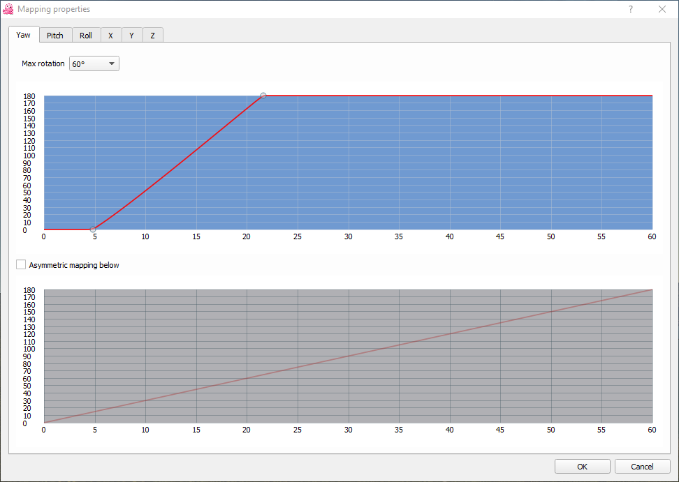 No_85_Gramps Posted November 12, 2017 Posted November 12, 2017 Okay, for the calibration, click toggle calibration, then, with the tracker mounted on your head, pitch up to maximum, yaw right, pitch down to maximum, yaw left, pitch up to maximum, yaw right to the center, then pitch down to center, then hit the toggle calibration button again. It's like you are making a big circle around your monitor. As far as the mapping take a look at this pic and you can see a flat (deadspace) area at the beginning of the graph, this can help a lot with unwanted movement. 1